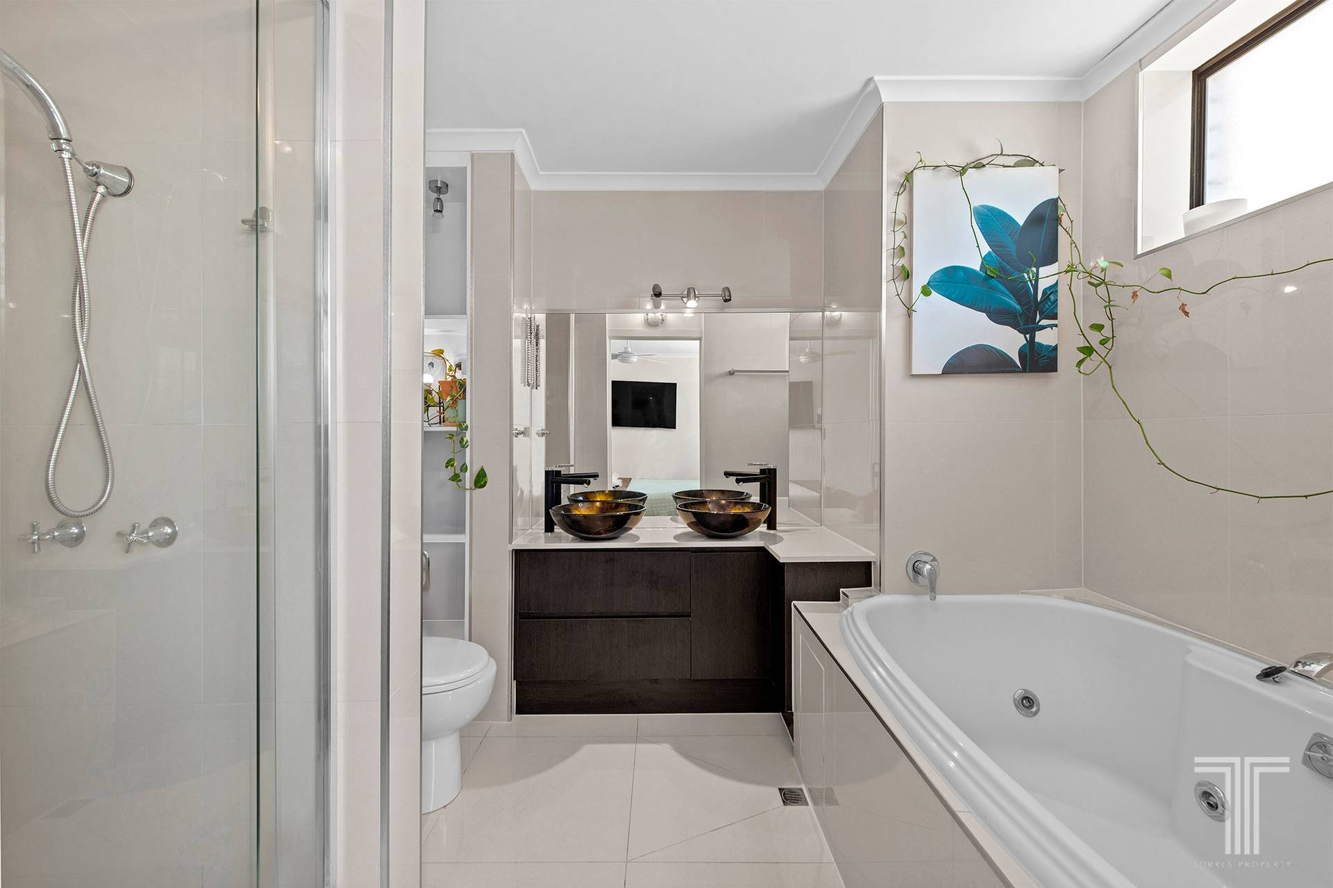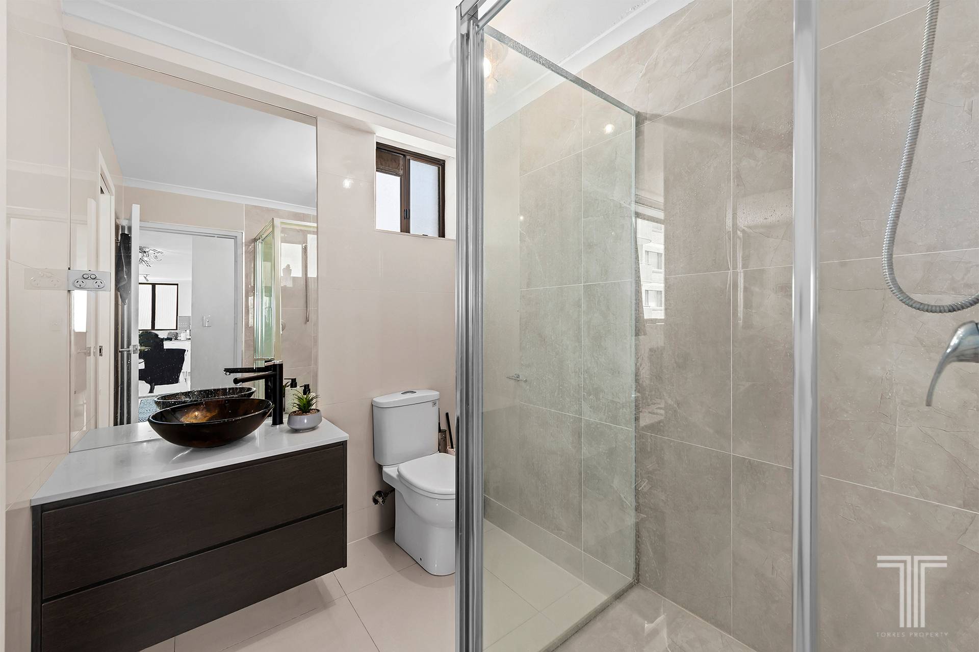 There is garage parking for one car, and three generous bedrooms are complemented by two beautifully renovated bathrooms with floor-to-ceiling tiles, floating vanities and feature basins. Luxury is elevated in the master suite, where a walk-in robe and an ensuite with dual vanities and a spa bath form the ultimate retreat.