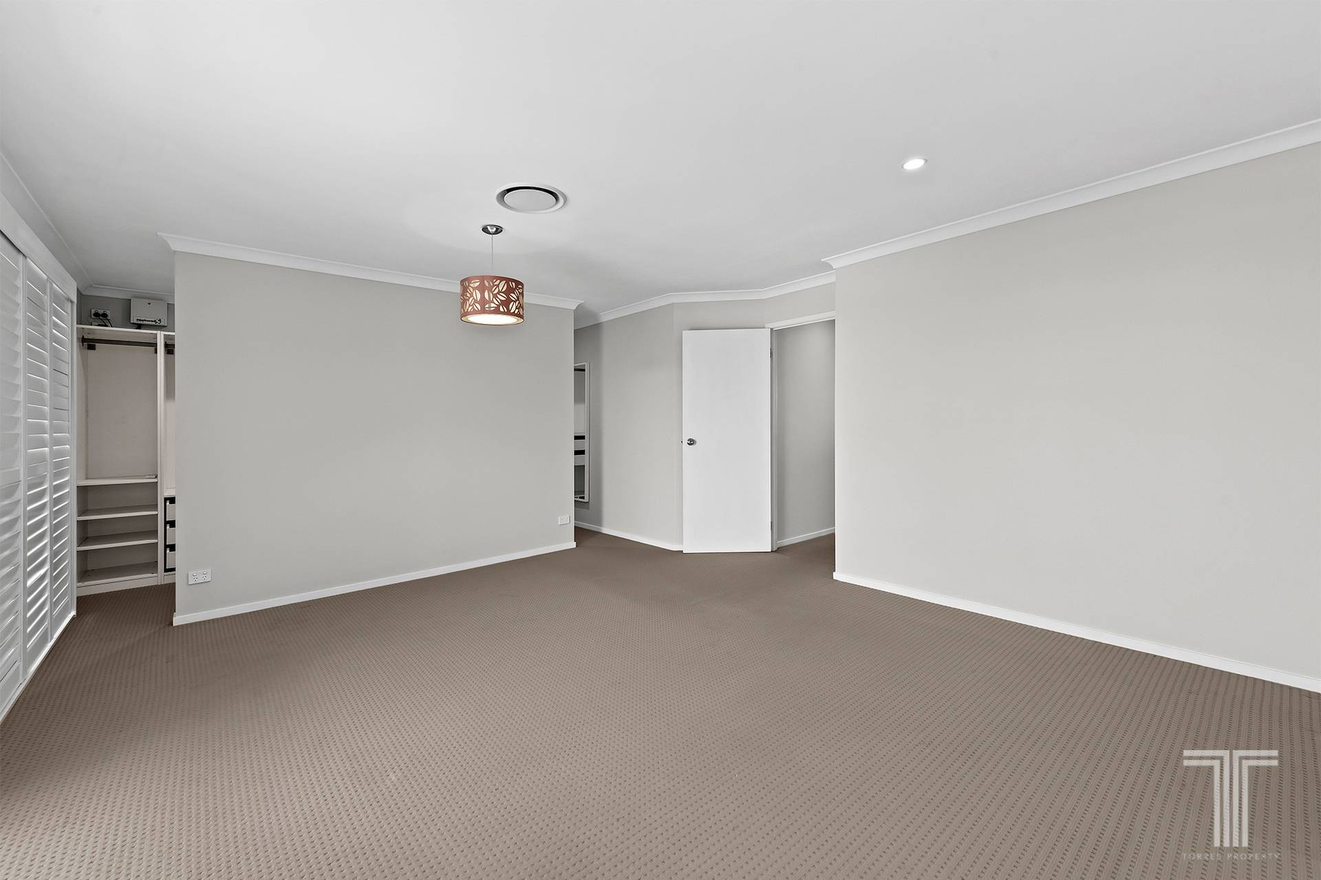 Ascending the staircase, the home unfolds into a haven of calm. Four generously sized bedrooms surround a spacious rumpus retreat, creating a peaceful family zone ideal for relaxation or play. The luxurious master suite commands attention with its private balcony, walk-in robe, and ensuite, providing a true parents' sanctuary. The remaining bedrooms all include built-in wardrobes, plush carpet underfoot, and ample natural light, designed to suit growing families with ease.