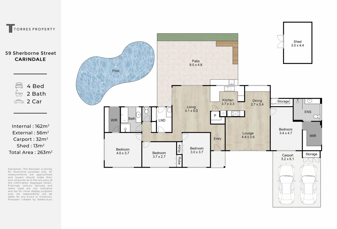Disclaimer: Whilst every care is taken in the preparation of the information contained in this marketing, Torres Property will not be held liable for any errors in typing or information. All interested parties should rely upon their own enquiries in order to determine whether or not this information is in fact accurate.