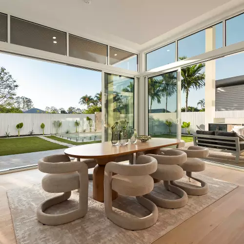 From the street, the striking facade and elevated position immediately convey a sense of modern prestige. Featuring a stone pathway from the gate, through to an impressive stone feature wall rising from the ground to the roof, the entrance is both welcoming and commanding, a visual masterpiece that sets the tone for what lies within. The bold proportions of the entry, with its breathtaking 6.1-metre-high foyer and oversized 2.7m x 1.5m door, perfectly complement the home's architectural presence. Enhanced by a Philips Smart Lock featuring remote control, facial recognition, and fingerprint access, the home opens into a world of elegance and intelligent design.