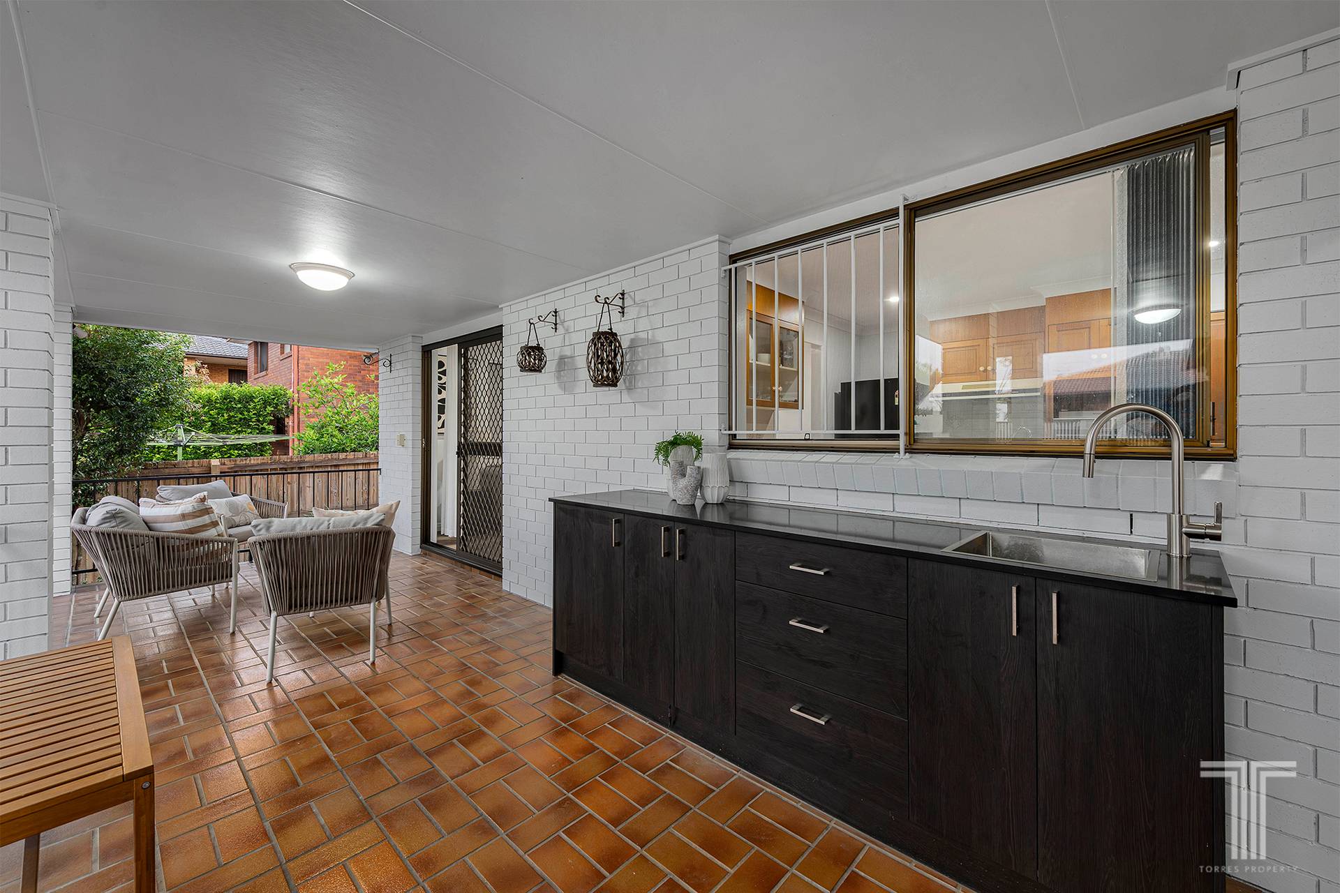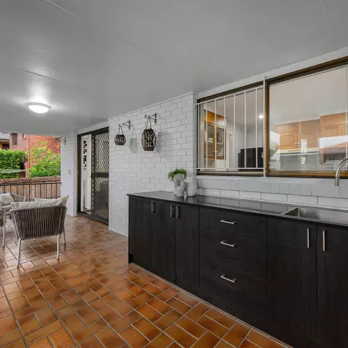 • Kitchen overlooks outdoor entertaining area