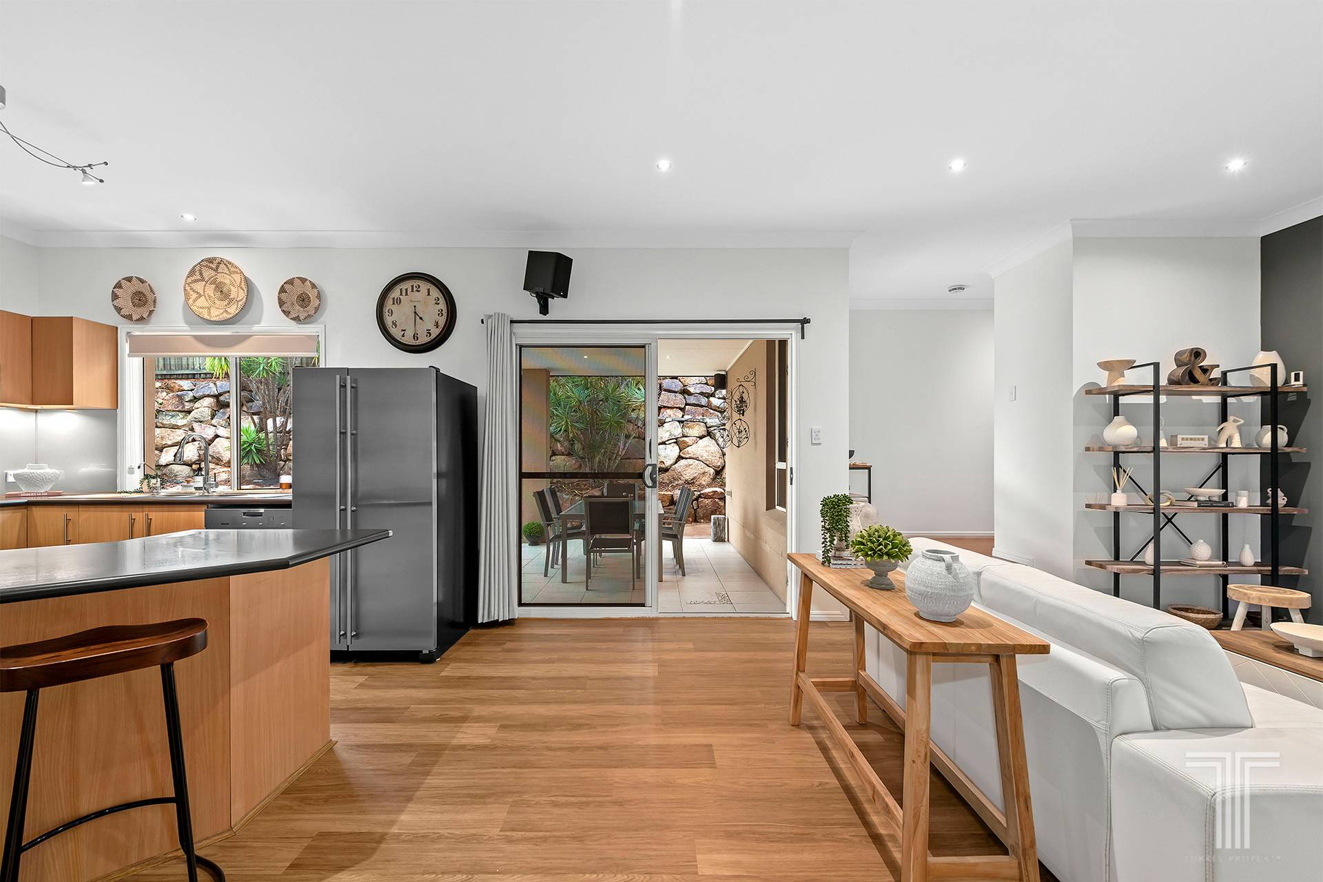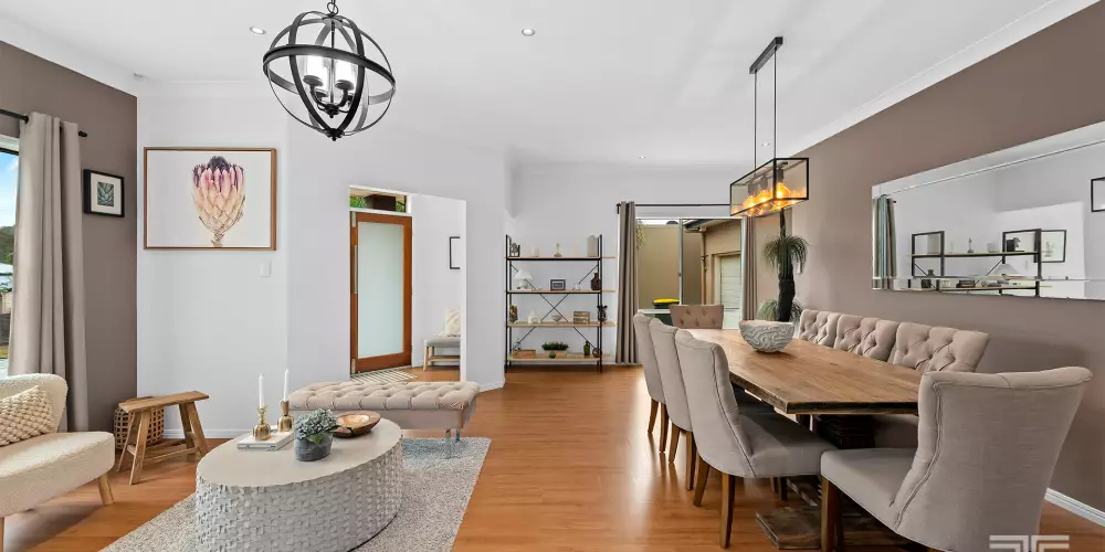 Stepping inside, the home welcomes you with a sense of calm and warmth. The interior has been freshened with new paint throughout, and the main living zone has been enhanced with new flooring for a modern, inviting feel. Multiple living areas create versatility for both families and entertainers, while large windows throughout ensure an abundance of natural light.