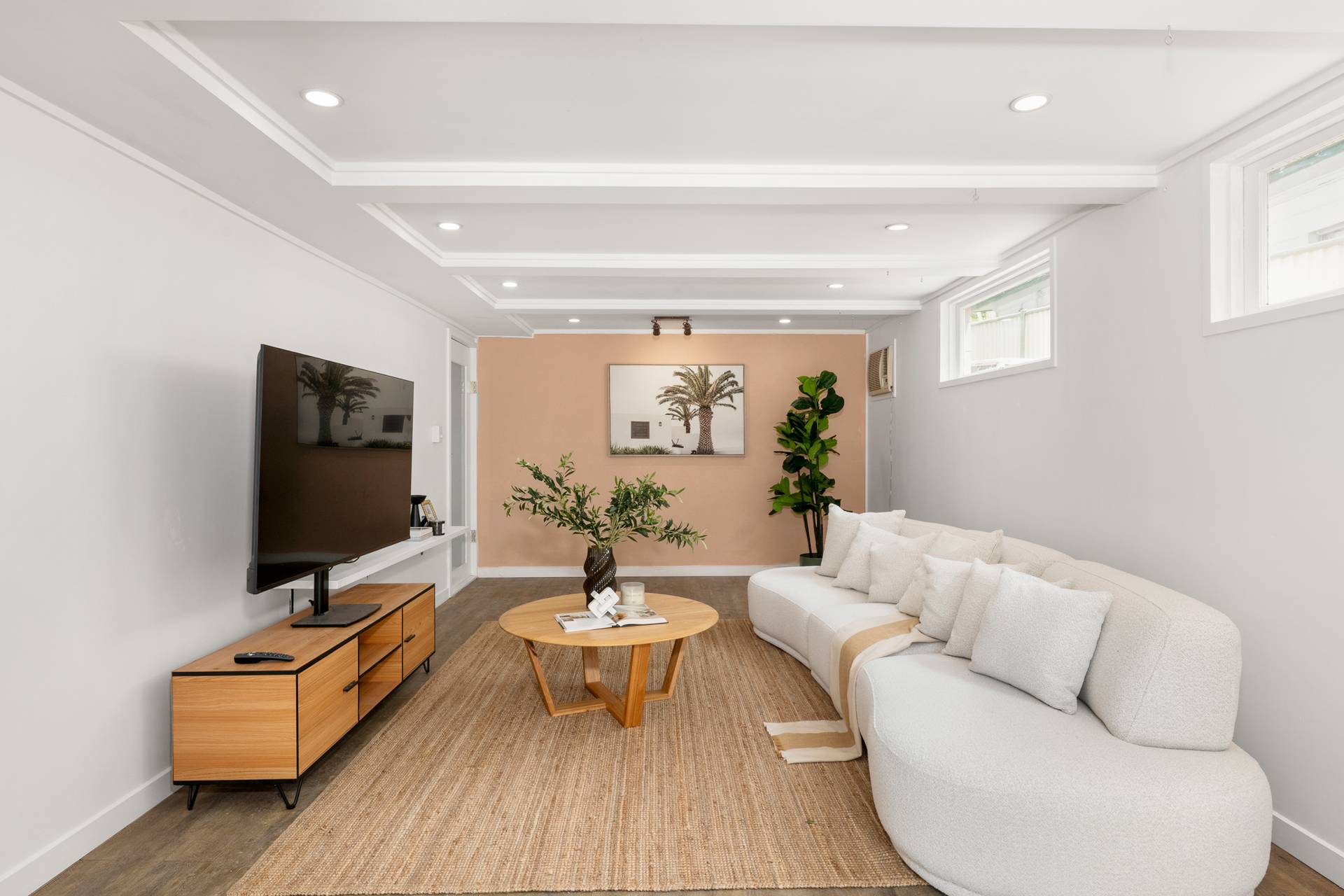 The lower level of this home offers exceptional versatility, ideal for families seeking additional living space or a dedicated work-from-home setup. Enjoy the convenience of private separate access, providing independence and privacy for extended family, teenagers, or guests. This level includes a large rumpus room, single car lockup accommodation or a dedicated indoor gym, a spacious office area, a modern bathroom, and ample storage. Whether used as a home business space, creative studio, or retreat, the layout beneath provides endless options for flexible living.