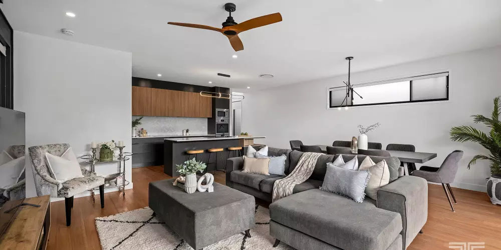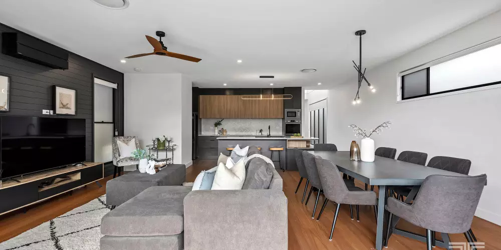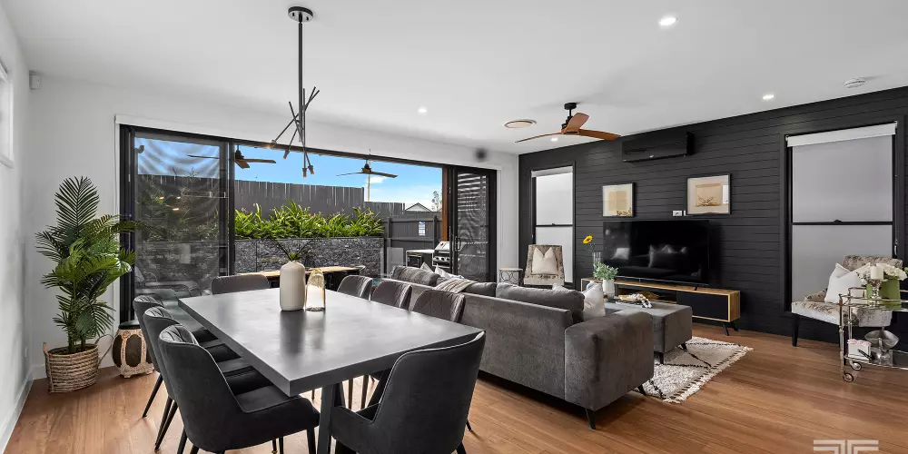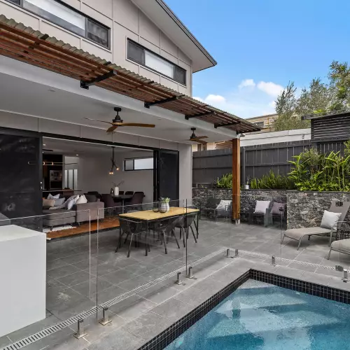 - Spacious open plan living and dining area overlooking the beautifully landscaped gardens and sparkling inground pool
