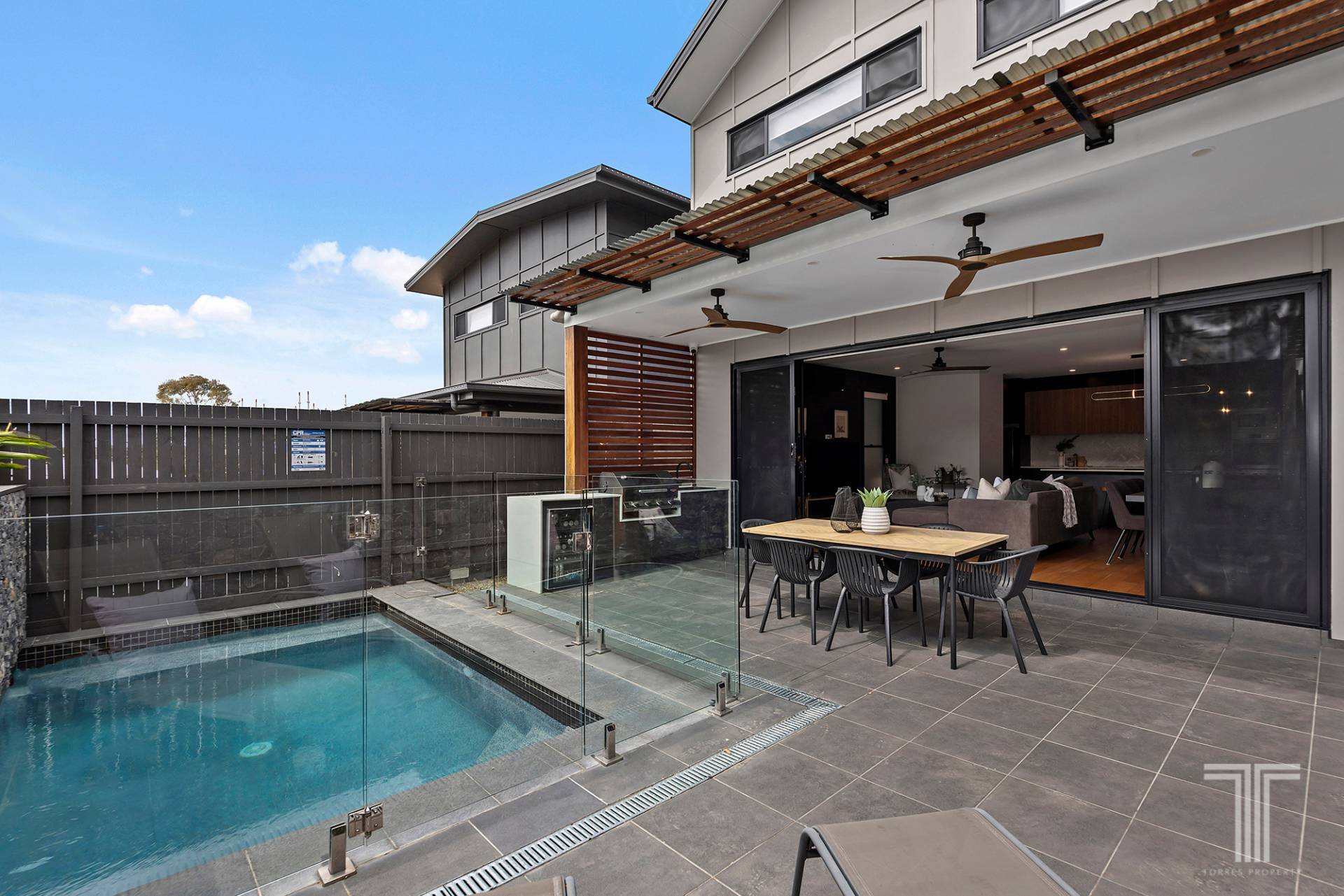 Featuring five spacious bedrooms, including a grand master bedroom with a large walk-in robe and a luxurious ensuite bathroom, and for added convenience, a guest bedroom and bathroom are located on the ground level. With two separate living areas and the large outdoor alfresco area overlooking an inviting inground pool, you'll have plenty of space to relax and entertain.