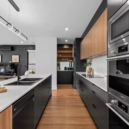 - Incredible chefs kitchen with European appliances, marble herringbone splashback tiles, butlers pantry and huge island bench