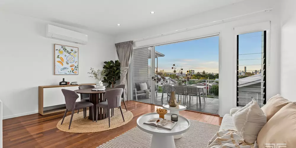 Set high in one of Greenslopes' most sought-after pockets, this beautifully presented residence delivers effortless living paired with breathtaking city skyline views. With a flowing open-plan layout and an expansive entertainer's deck, this home offers the perfect balance of style, comfort, and functionality.