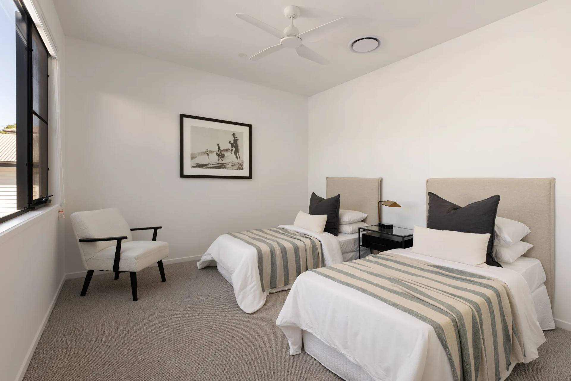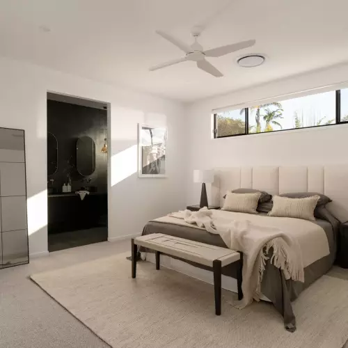 Ascending the feature staircase, the upper level reveals a serene family retreat with a study nook. The master suite defines luxury living-lavishly proportioned with dual walk-in robes and an indulgent ensuite featuring premium finishes. A second ensuite bedroom, two additional bedrooms with built-in robes and a designer main bathroom with wet-room bath and shower complete this exceptional level.