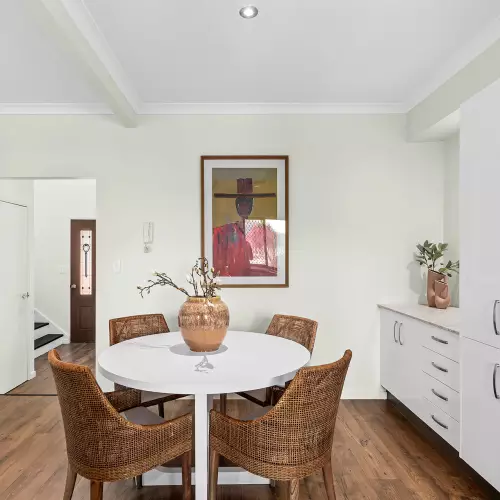 The master bedroom features a walk-in robe and ensuite, while the additional bedrooms include built-in wardrobes. Thoughtful extras such as under-stair storage, a linen closet and subfloor access from the courtyard offer practical convenience rarely found in townhouse living.