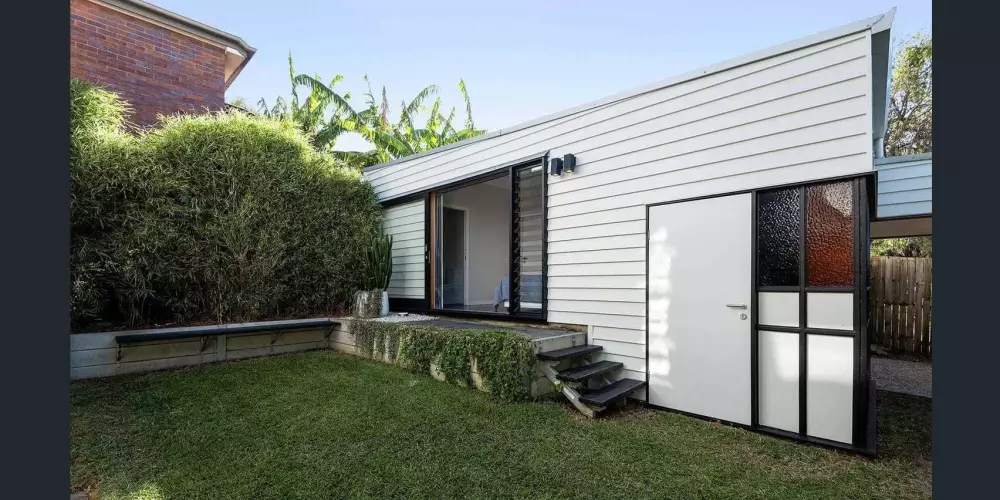 The backyard leads to a granny flat, complete with an ensuite, clever storage solutions, a private courtyard, workshop, and carport with a separate driveway.