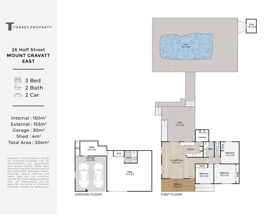 Disclaimer: Whilst every care is taken in the preparation of the information contained in this marketing, Torres Property will not be held liable for any errors in typing or information. All interested parties should rely upon their own enquiries in order to determine whether or not this information is in fact accurate.