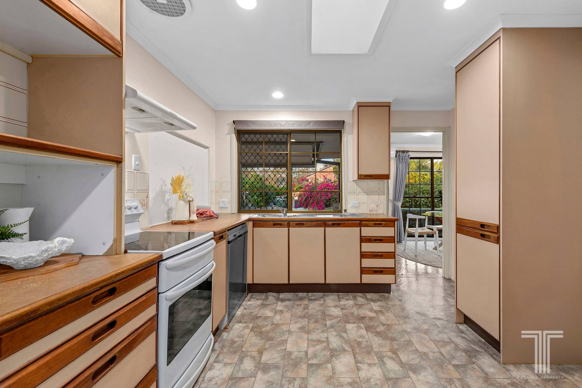 Filled with natural light, the home features an inviting layout designed for comfortable living. The spacious, air-conditioned living and dining area is complemented by large windows that frame lush garden views, creating a warm and welcoming atmosphere. The practical kitchen, complete with a freestanding oven and stainless steel dishwasher, is ready to inspire your culinary creations. Outdoors, the undercover patio provides the perfect space to relax while watching kids and pets play on the grassy lawns, surrounded by vibrant greenery and beautifully maintained gardens.