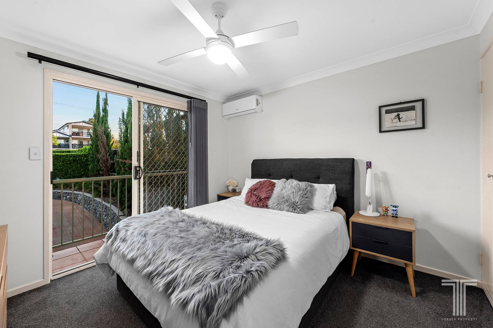 Both bedrooms have been thoughtfully designed for comfort and separation. Each opens directly onto a second private balcony, creating an effortless indoor–outdoor flow and allowing fresh air and natural light to stream through. The master bedroom includes air conditioning, and each include ceiling fans and built-in wardrobes.