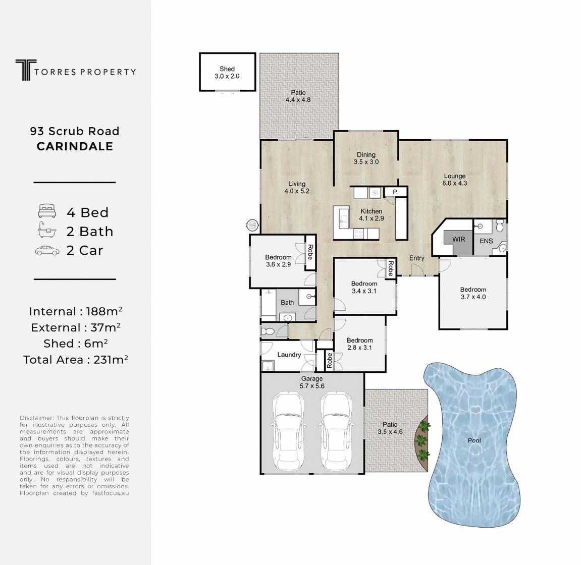 Disclaimer: Whilst every care is taken in the preparation of the information contained in this marketing, Torres Property will not be held liable for any errors in typing or information. All interested parties should rely upon their own enquiries in order to determine whether or not this information is in fact accurate.