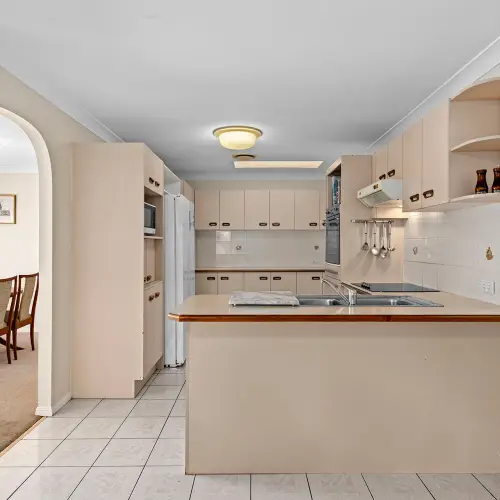 Inside, the property features four generous bedrooms, including a spacious master, complete with walk-in robe and ensuite. Three other bedrooms are serviced by a central bathroom with a separate bathtub. Soft carpeting adds comfort to the bedrooms, whilst tiles and timber flooring throughout the main living areas ensure durability and easy care.