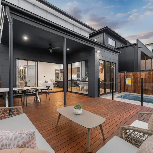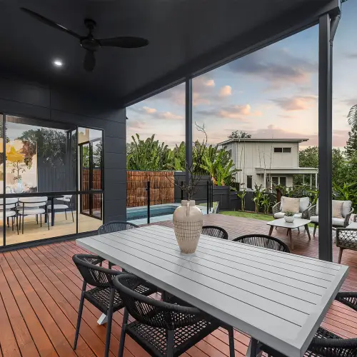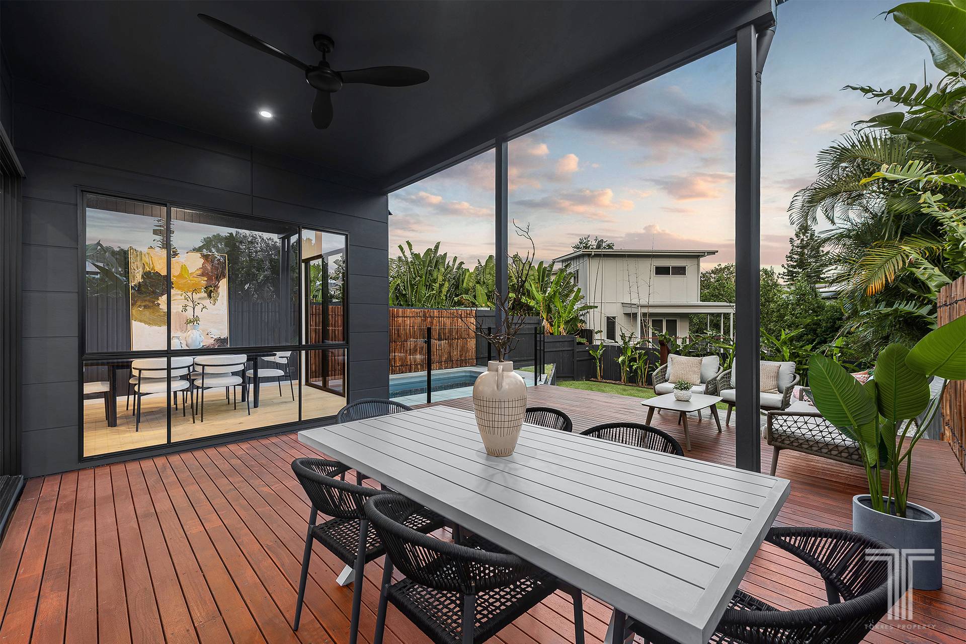 Large glass doors open from the main living area onto an expansive large rear entertaining deck, creating a seamless transition between indoor and outdoor living. Generously proportioned, the deck provides an ideal setting for alfresco dining, weekend gatherings and long summer evenings, overlooking the swimming pool and outdoor fire pit area designed for relaxed nights with friends during the cooler months. This thoughtfully designed outdoor zone delivers a true resort style feel while still providing space for recreation and privacy.