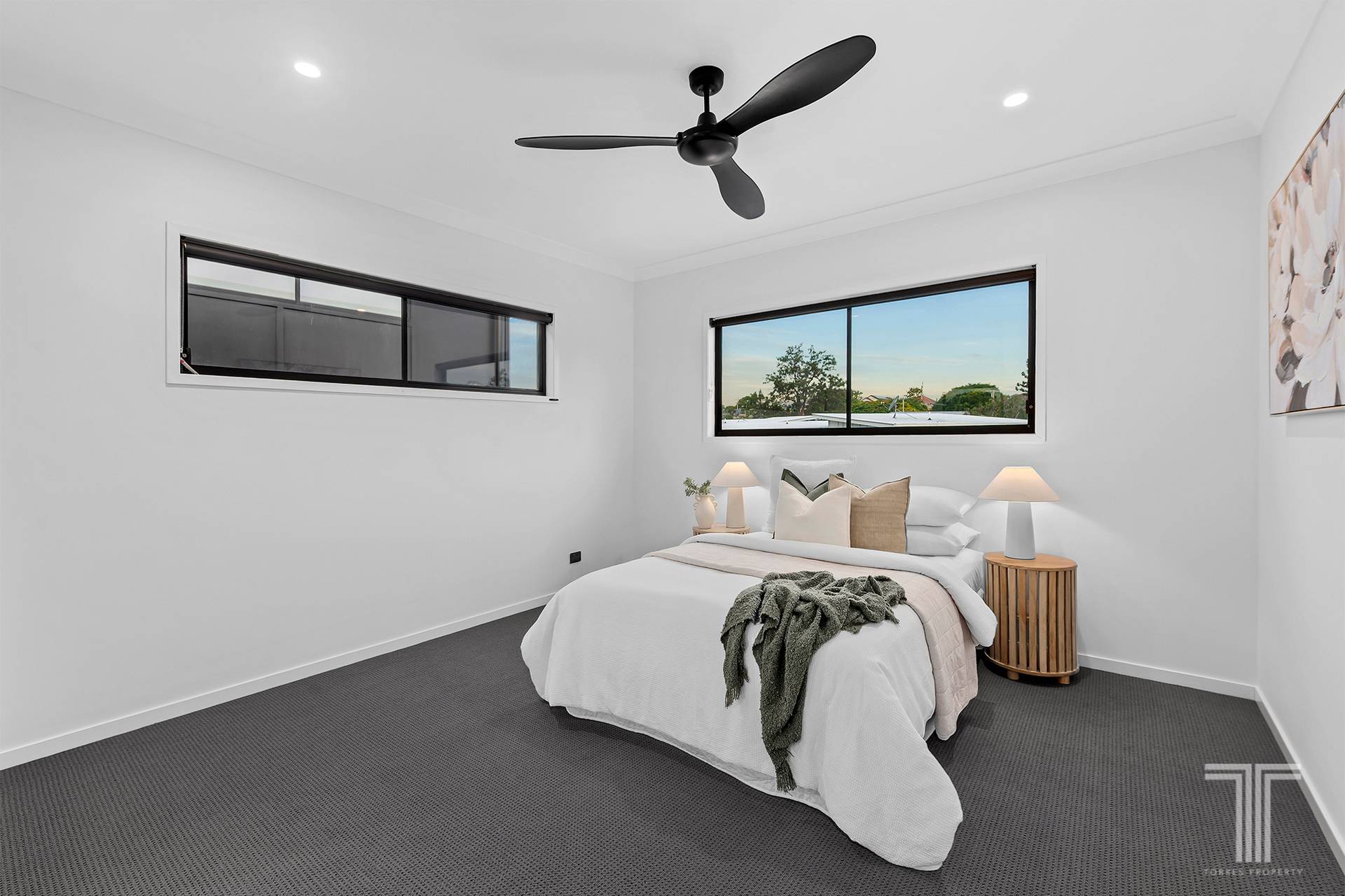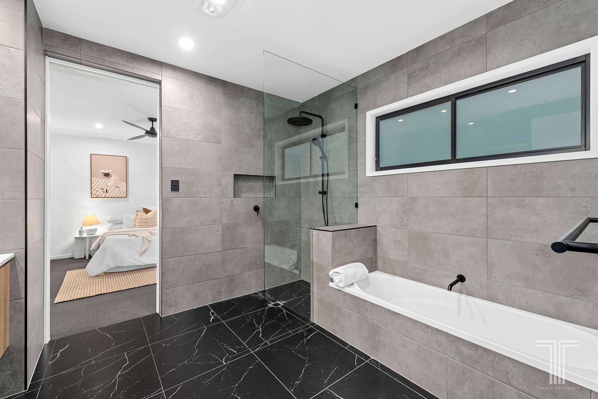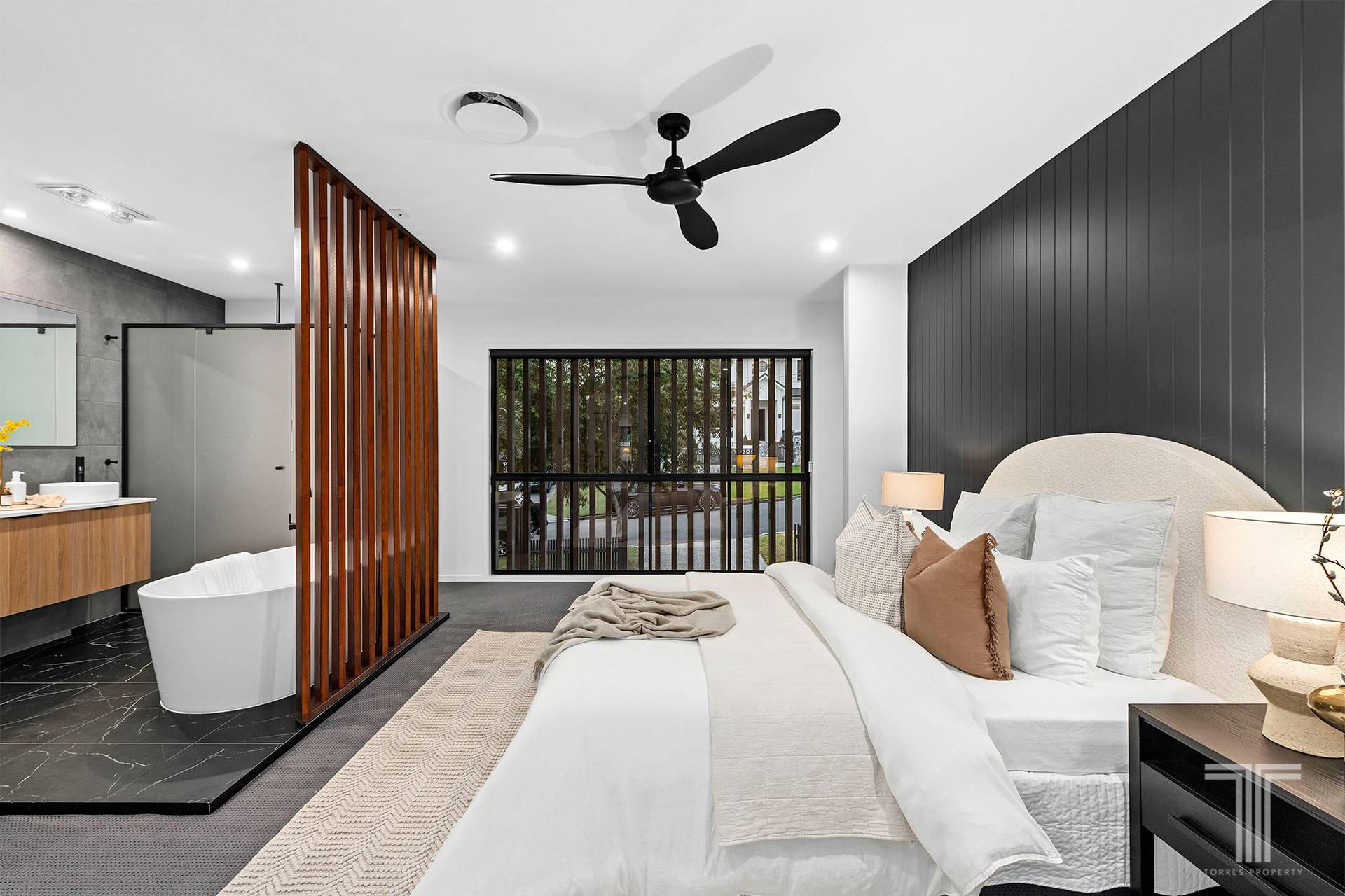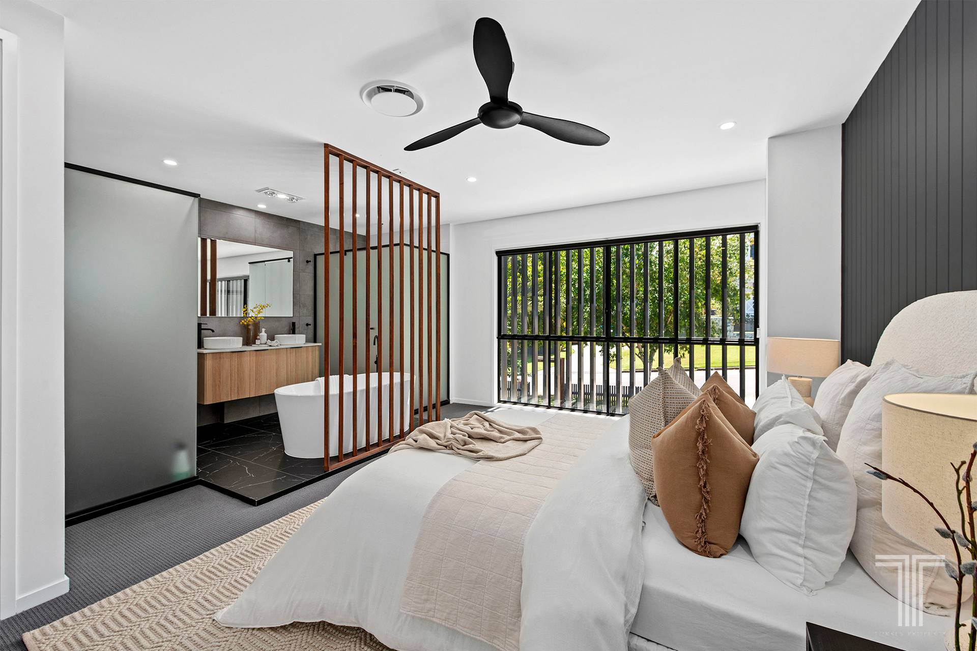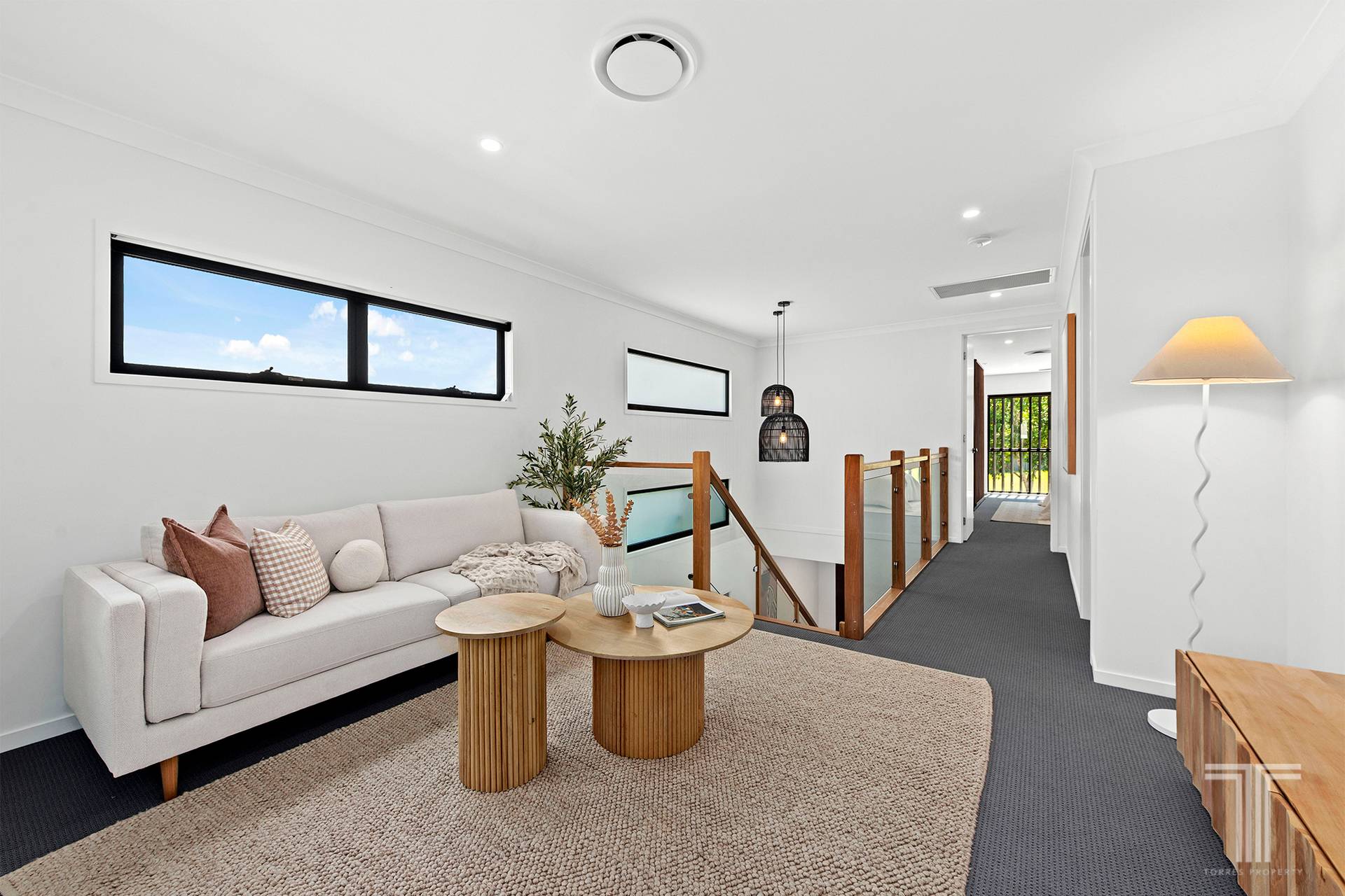 The master suite forms its own private retreat, complete with HIS & HERS 2 independent spacious walk-in robes and a luxurious ensuite featuring a freestanding bath. From here, elevated views across Whites Hill create a tranquil space to begin and end each day. A second living area upstairs provides a flexible zone for children, media or quiet relaxation while enjoying the green Whites Hill outlook and natural light.