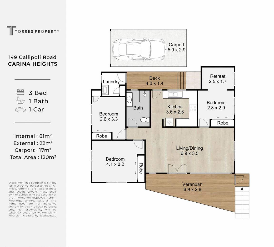 Disclaimer: Whilst every care is taken in the preparation of the information contained in this marketing, Torres Property will not be held liable for any errors in typing or information. All interested parties should rely upon their own enquiries in order to determine whether or not this information is in fact accurate.