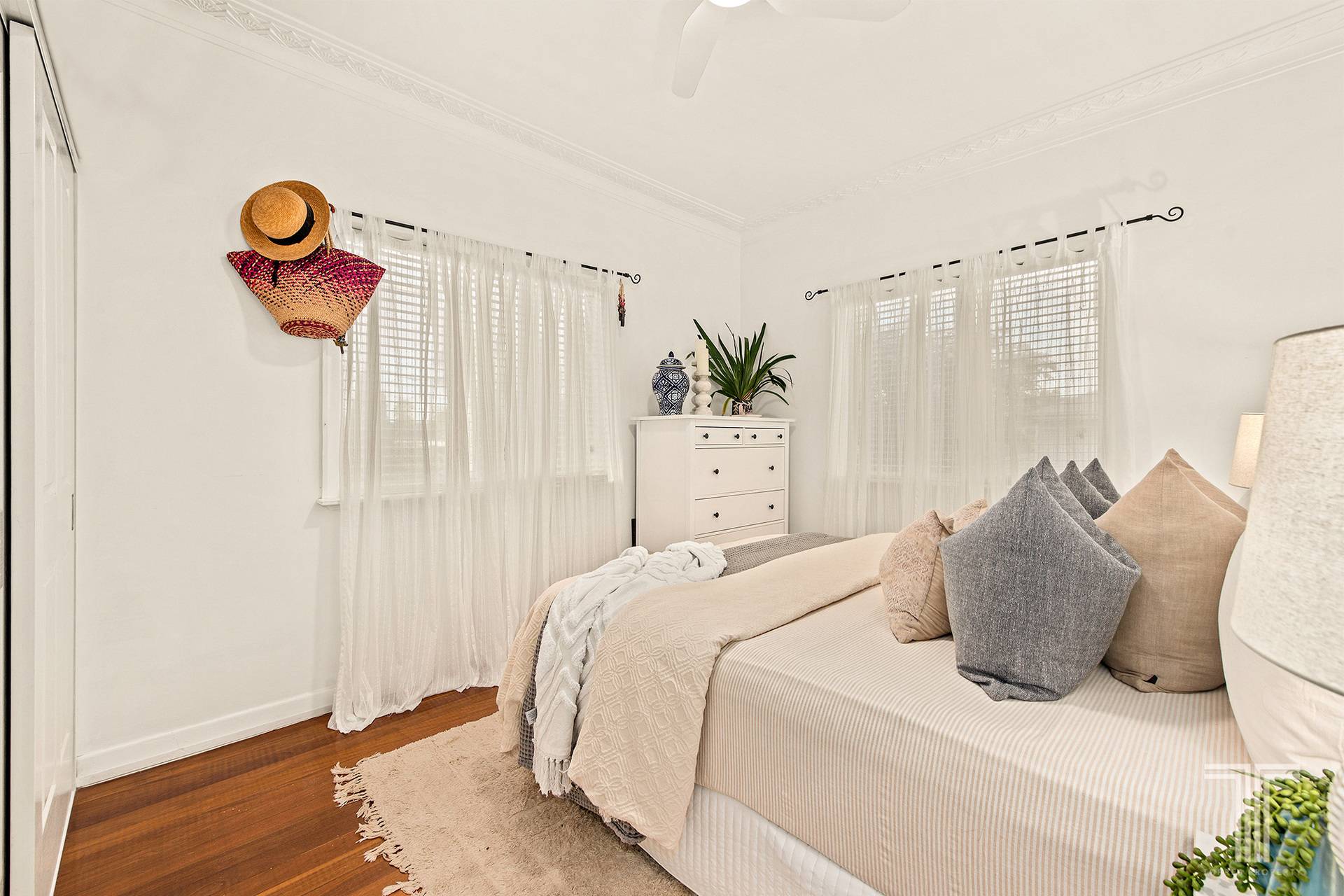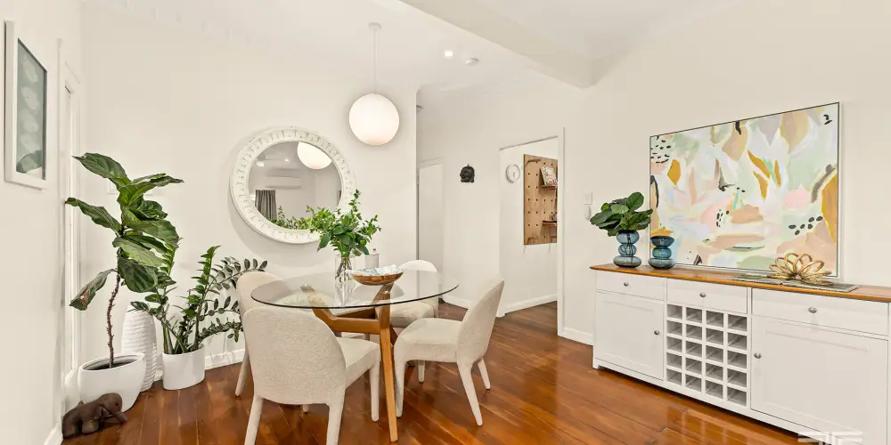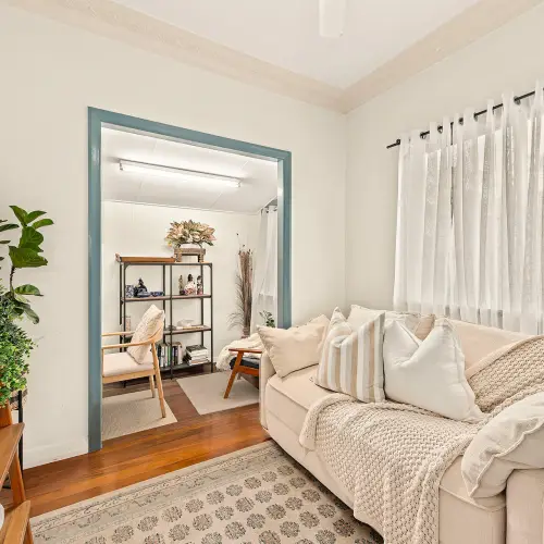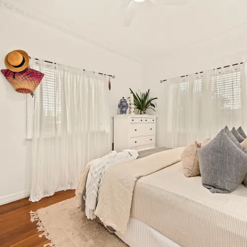 From the elevated front deck, you'll feel the inviting cottage-style atmosphere that makes this home so special. The deck offers a comfortable, cosy transition into the interior, setting a tone of welcoming warmth that continues throughout. The solid hardwood floors introduce a timeless quality underfoot, harmonising with crisp plantation shutters and well-proportioned rooms that present a refined canvas for living and everyday life.