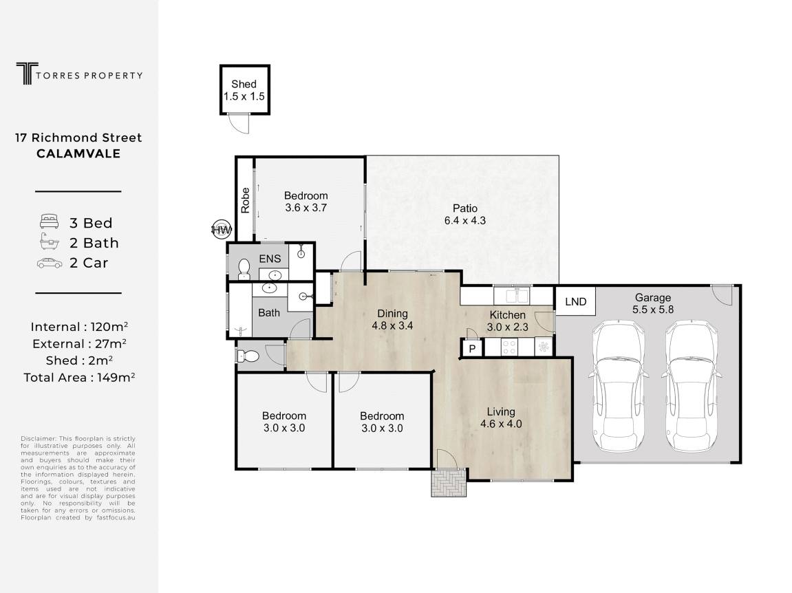 **Disclaimer:** Whilst every care is taken in the preparation of the information contained in this marketing, Torres Property will not be held liable for any errors in typing or information. All interested parties should rely upon their own enquiries in order to determine whether or not this information is in fact accurate.