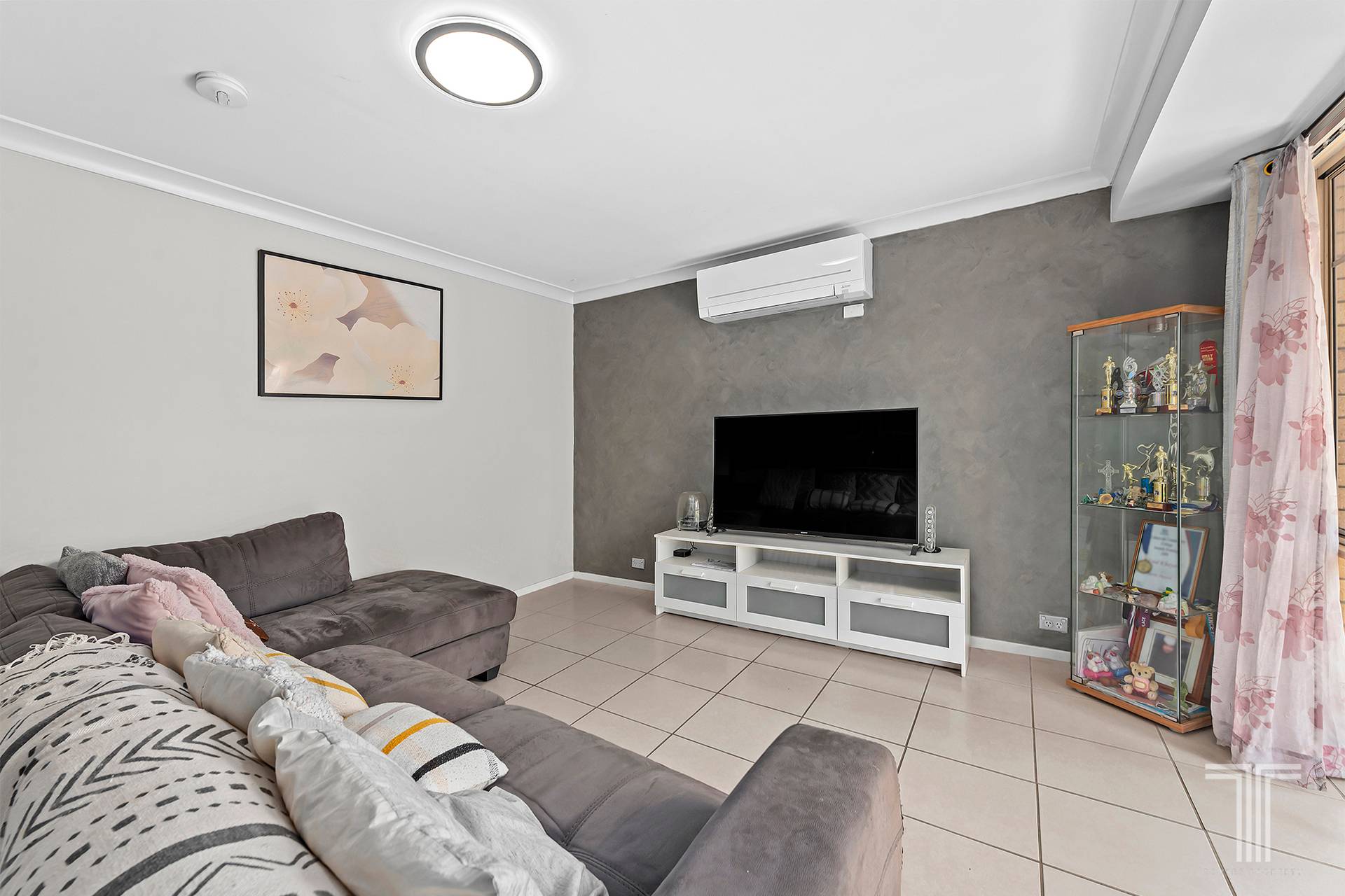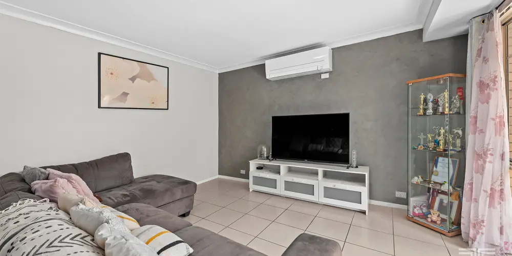 The heart of the home centres on generous living spaces that have been maintained with care and an eye for everyday ease. Well-appointed and low maintenance, the interior is anchored by air-conditioning in both the living zone and master suite, ensuring comfort across every season. The master bedroom boasts an ensuite for added convenience, while the additional bedrooms are served by a thoughtfully designed second bathroom. White walls enriched with a touch of greys and texture create a light, calming canvas that effortlessly supports relaxed living and future design refinement.