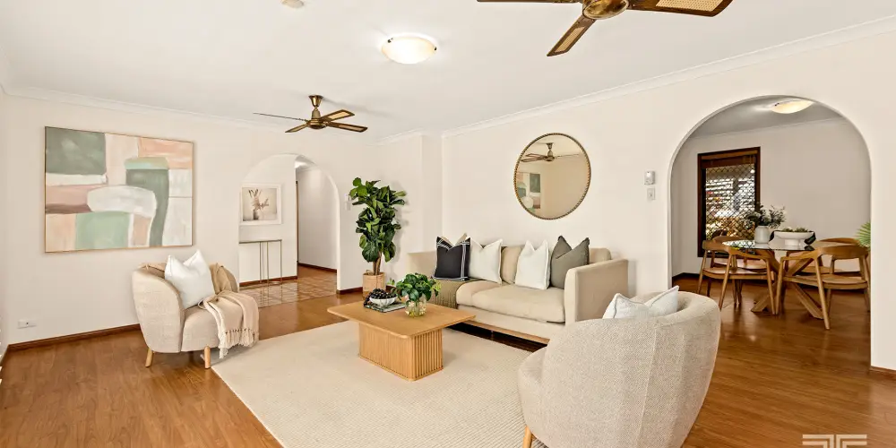 Upon entering, you're welcomed by an interior that balances timeless solidity with updates that hint at what's possible. Spacious living areas flow with practicality and purpose, creating zones for daily life, relaxed gatherings, and quiet repose. Recent flooring updates add a contemporary layer to the home's interior, setting a calm, inviting backdrop that complements its original charm. Built-in wardrobes throughout the bedrooms reflect thoughtful design and everyday convenience, while the layout itself encourages flexible use of space that can grow with your family's needs.