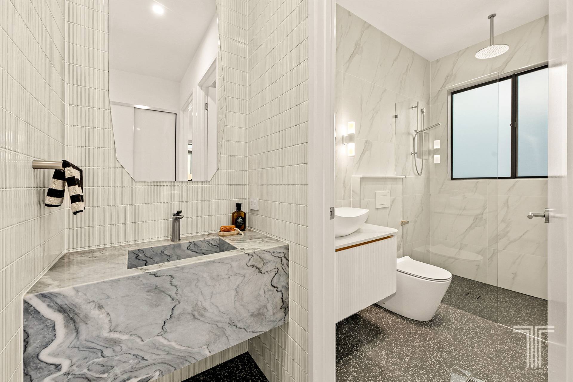 Also on this level, a privately positioned bedroom with ensuite and powder room which offers flexibility for guests or extended family, alongside internal access from the double remote garage, lift connectivity and a thoughtfully located laundry that continues the home's intuitive flow.