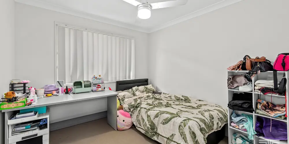 Accommodation is well considered, with four bedrooms thoughtfully positioned to suit both family living and shared arrangements. The master suite complete with a private ensuite and his-and-hers built-in robes, while the remaining bedrooms are serviced by a central bathroom and enjoy ceiling fans for added comfort.