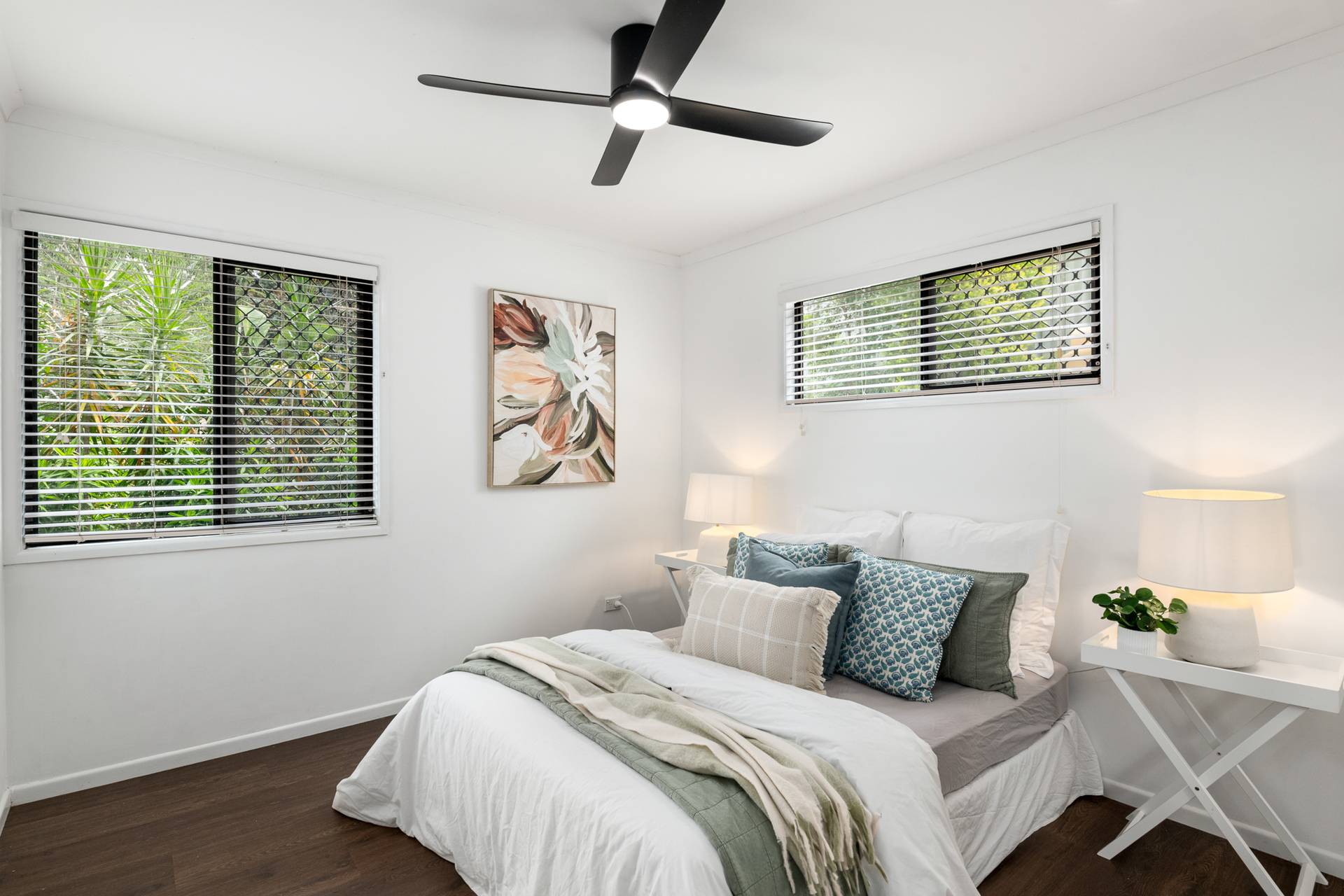 Upstairs is where the home truly comes alive. The master bedroom complete with walk-in robe and private ensuite flows effortlessly to the open-plan kitchen, dining and secondary living area form a welcoming hub. Large doors open seamlessly onto an expansive, enclosed entertaining deck, creating a natural extension of the living space and capturing tranquil views across the yard and adjoining parklands.