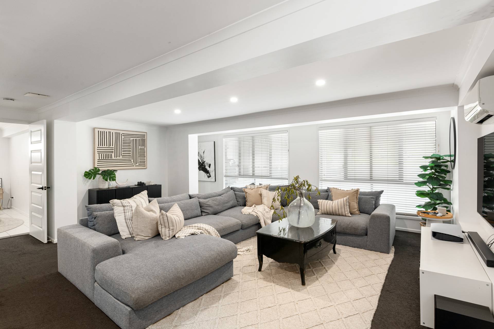 Downstairs provides exceptional functionality with a comfortable living area, a sizable study + 3 generously sized rooms, creating an ideal retreat for children, guests or extended family. This level offers separation and privacy while still feeling connected to the heart of the home.