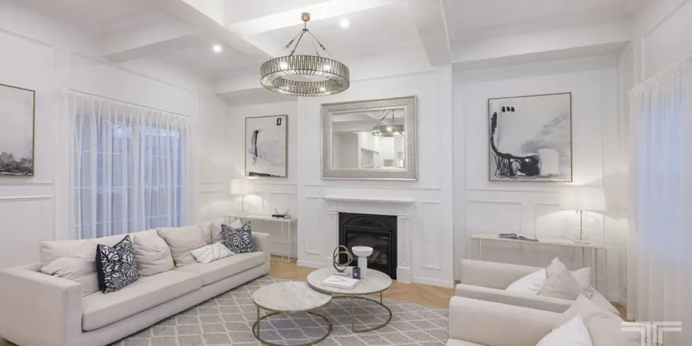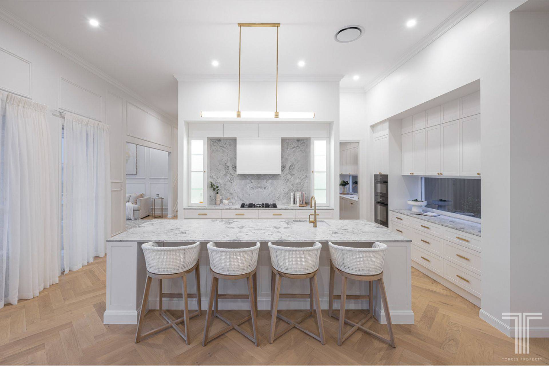 Be mesmerised from your first curious step into the elegant entry foyer, raising your sight to the 6 metre void showcasing a magnificent chandelier crafted with brushed brass and frosted glass suspended over the glorified stairwell.