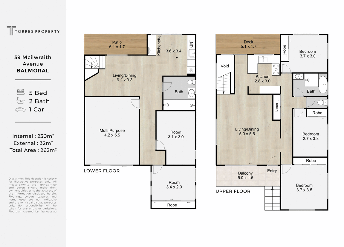 – Front balcony + rear entertaining deck