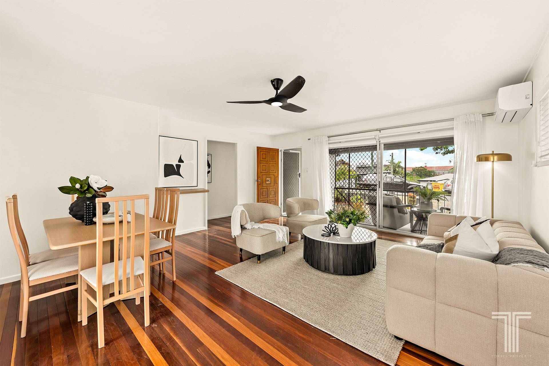 Three bedrooms, two bathrooms. Light-filled open-plan living and dining. Polished timber and concrete floors underfoot. And two outdoor spaces that do what good outdoor spaces should do extend the living, not just decorate it.