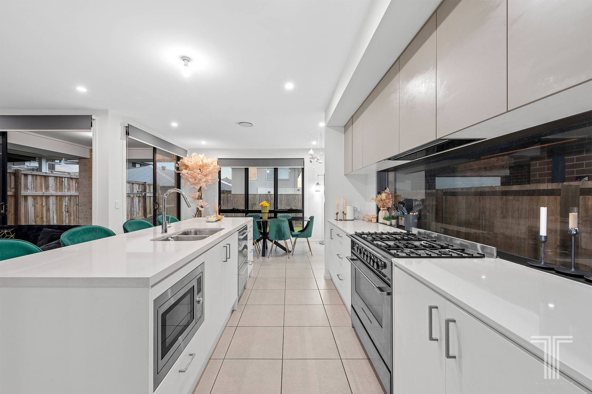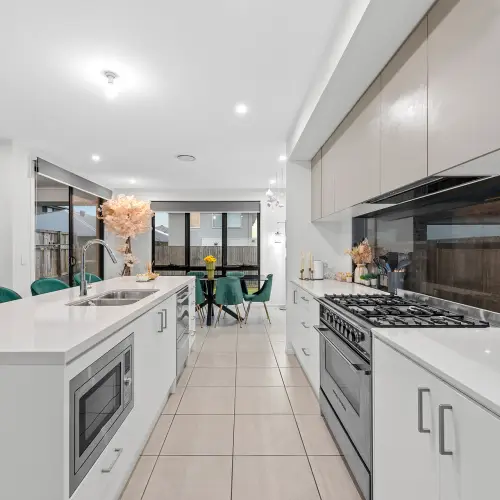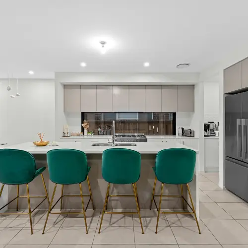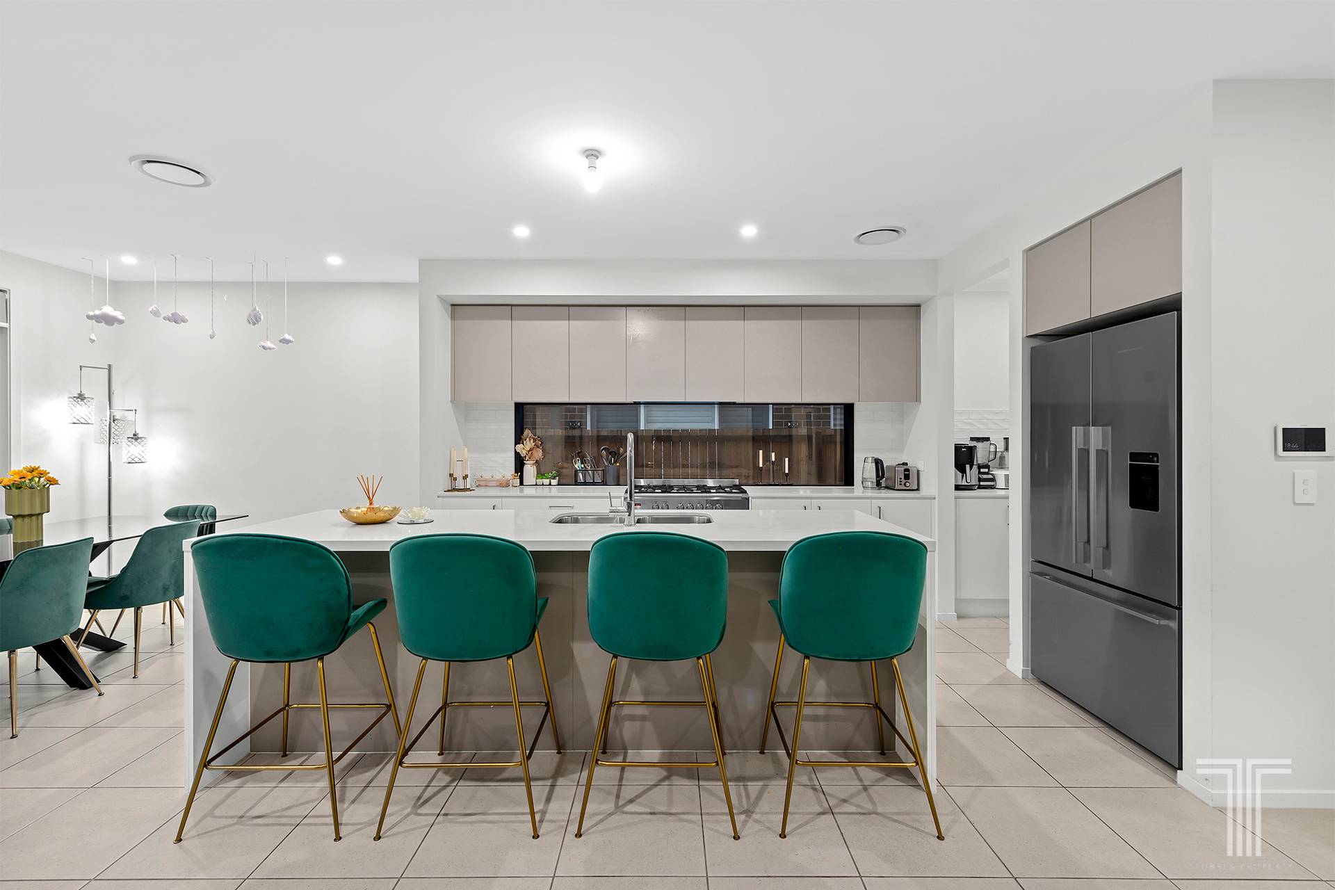 At the centre of it all, the main living, dining and kitchen spaces flow with ease, anchored by a large 40mm bench top island and a large sliding door that draws the outdoors in. More features include a butlers pantry, Fisher and Pykel appliances and reverse heat/cooling systems for that added lifestyle of ease and access.