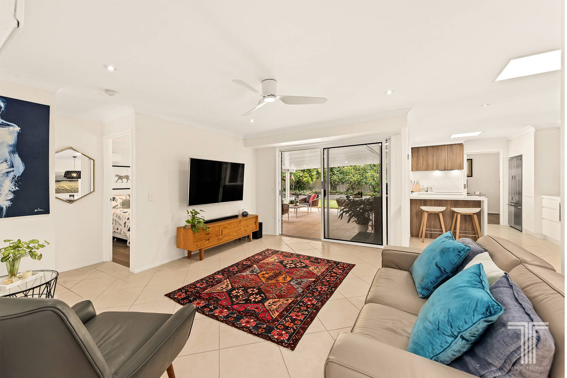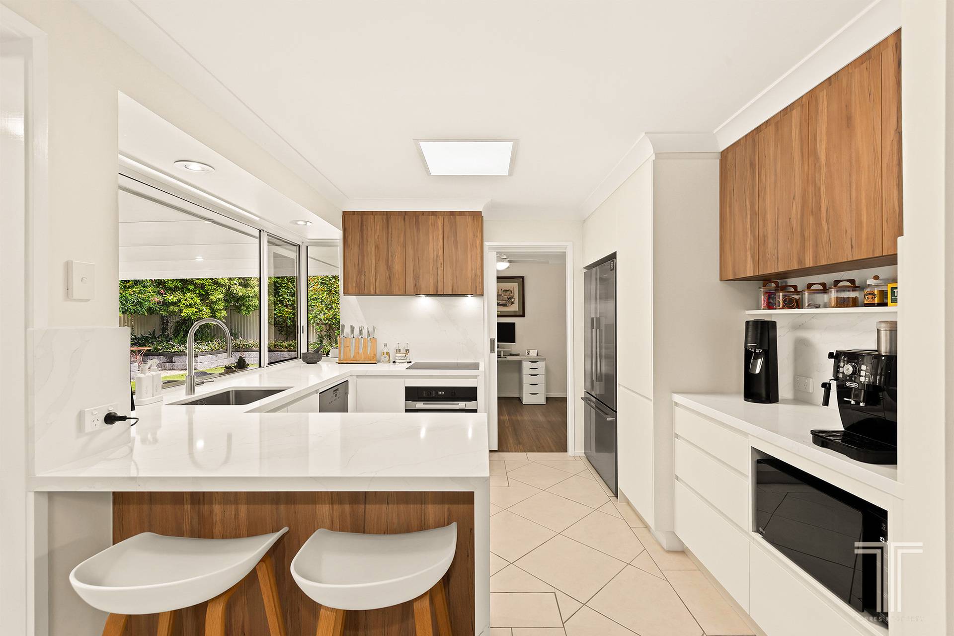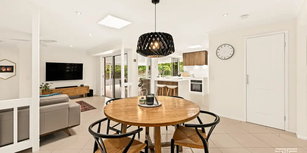 Beyond the entrance, the home unfolds with a sense of ease that feels entirely natural. Soft light filters through expansive windows, while a perfectly positioned skylight draws sunshine into the heart of the home, creating interiors that feel bright, calm and undeniably inviting. A cohesive natural palette flows throughout, delivering a backdrop that is both elegant and versatile. Every space feels considered, every transition seamless, reinforcing the sense that this is a home designed not just to be seen, but to be lived in.
