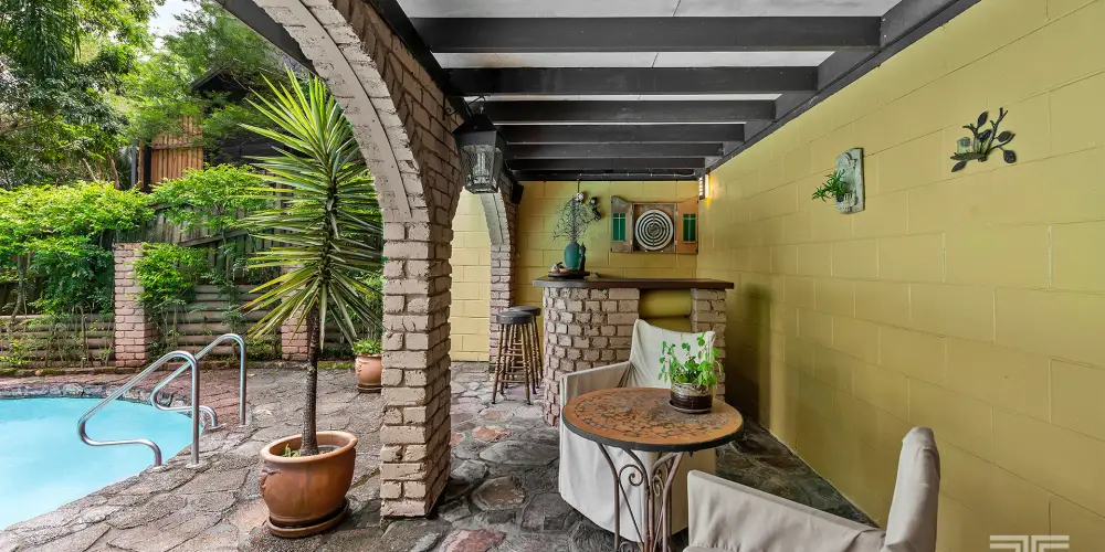 Designed for entertaining, two dedicated bar areas introduce a playful edge, while four terrace balconies extend the living experience outward, capturing breezes and greenery. Outdoors, a spectacular 60,000 litre resort-style swimming pool forms a striking centrepiece within the private, established surrounds.