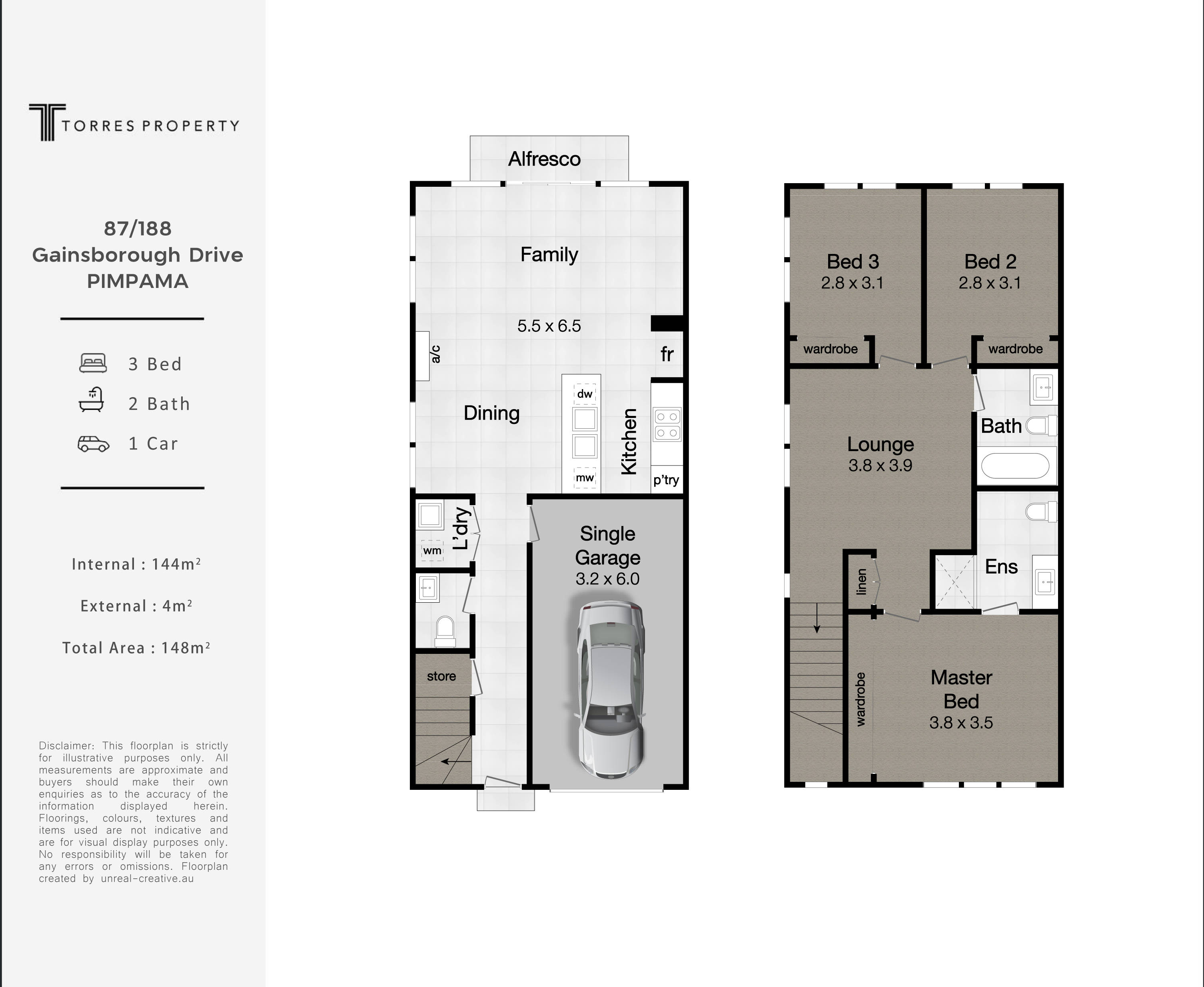 3 Beds 2 Baths 2 Cars Pool 144 m2