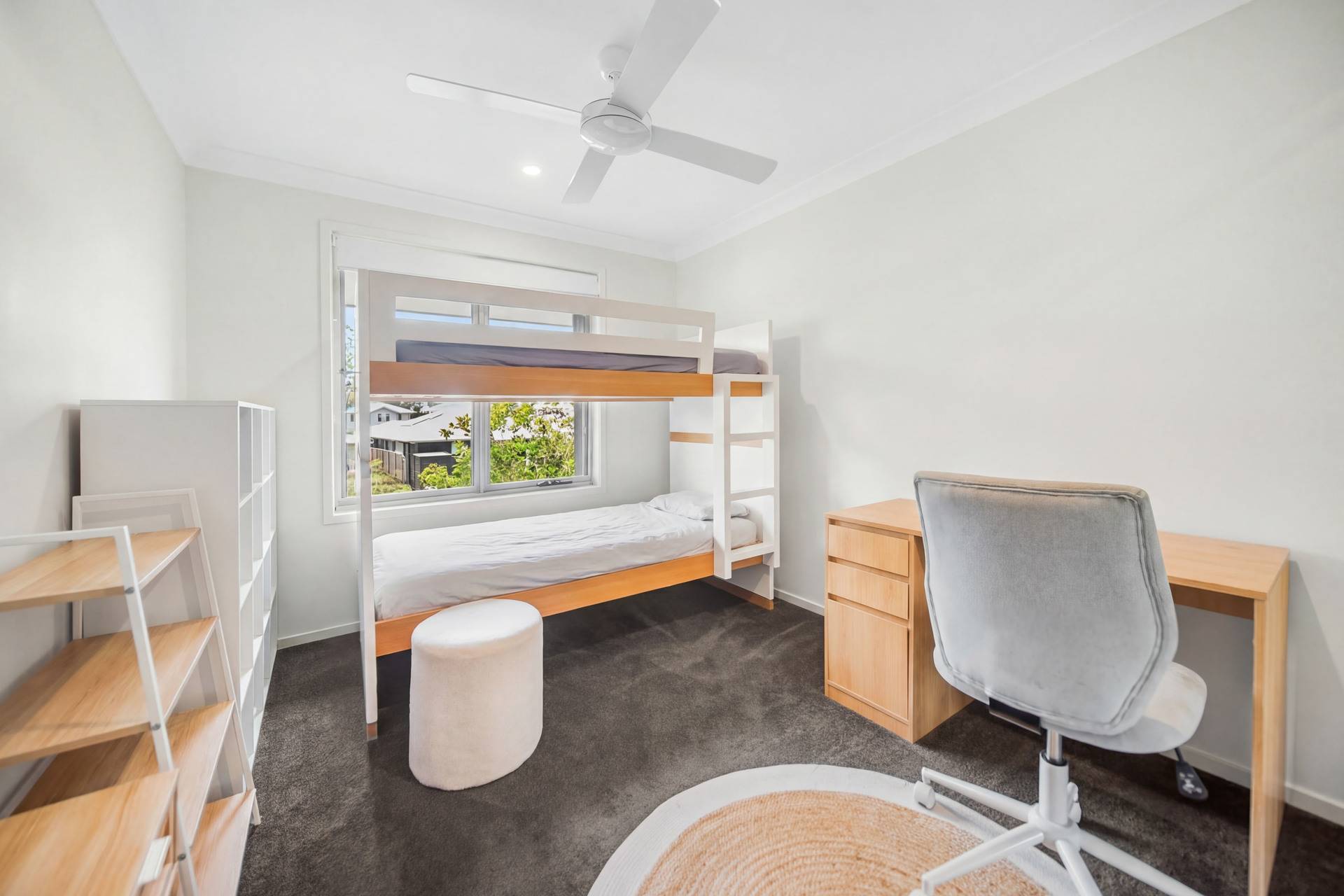 Upstairs, three generously proportioned bedrooms offer comfort and privacy. The master suite is a true sanctuary, complete with a sleek private ensuite and split-system air conditioning. A second split-system services the main living area, while ceiling fans throughout ensure year-round comfort.