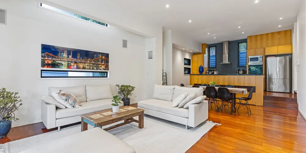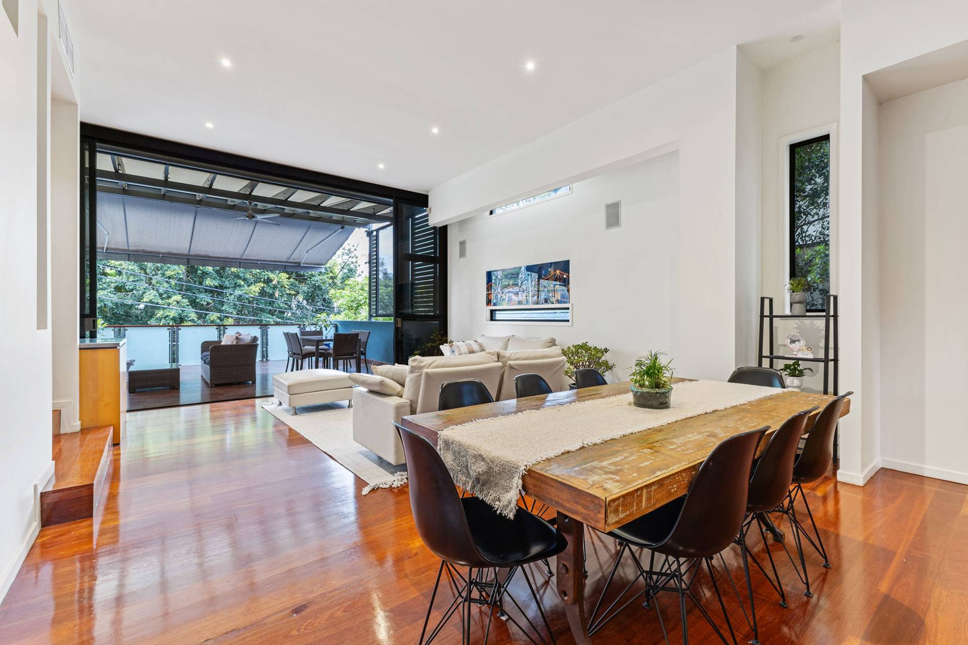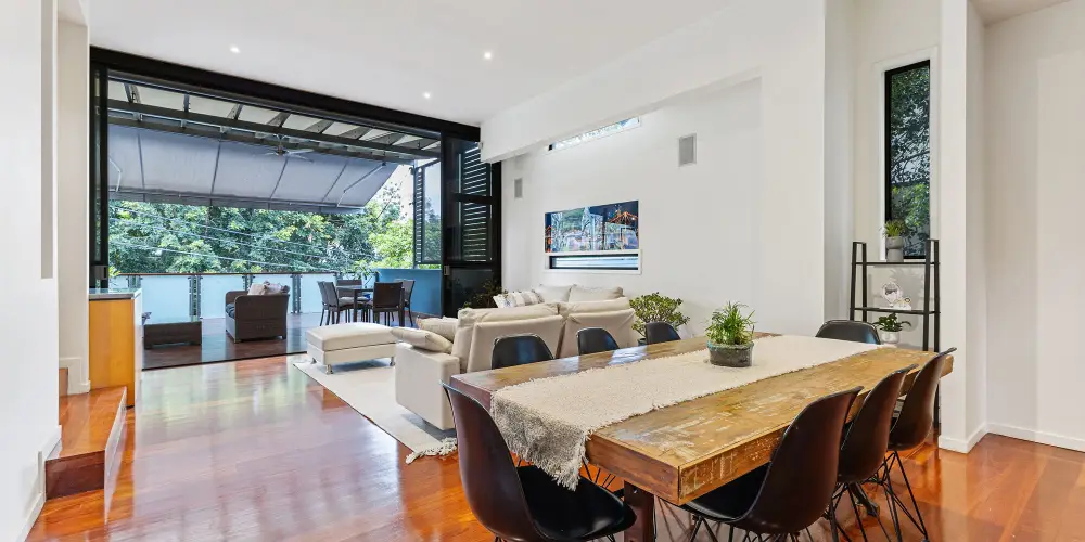 - Open-plan living and dining area flowing to outdoor space