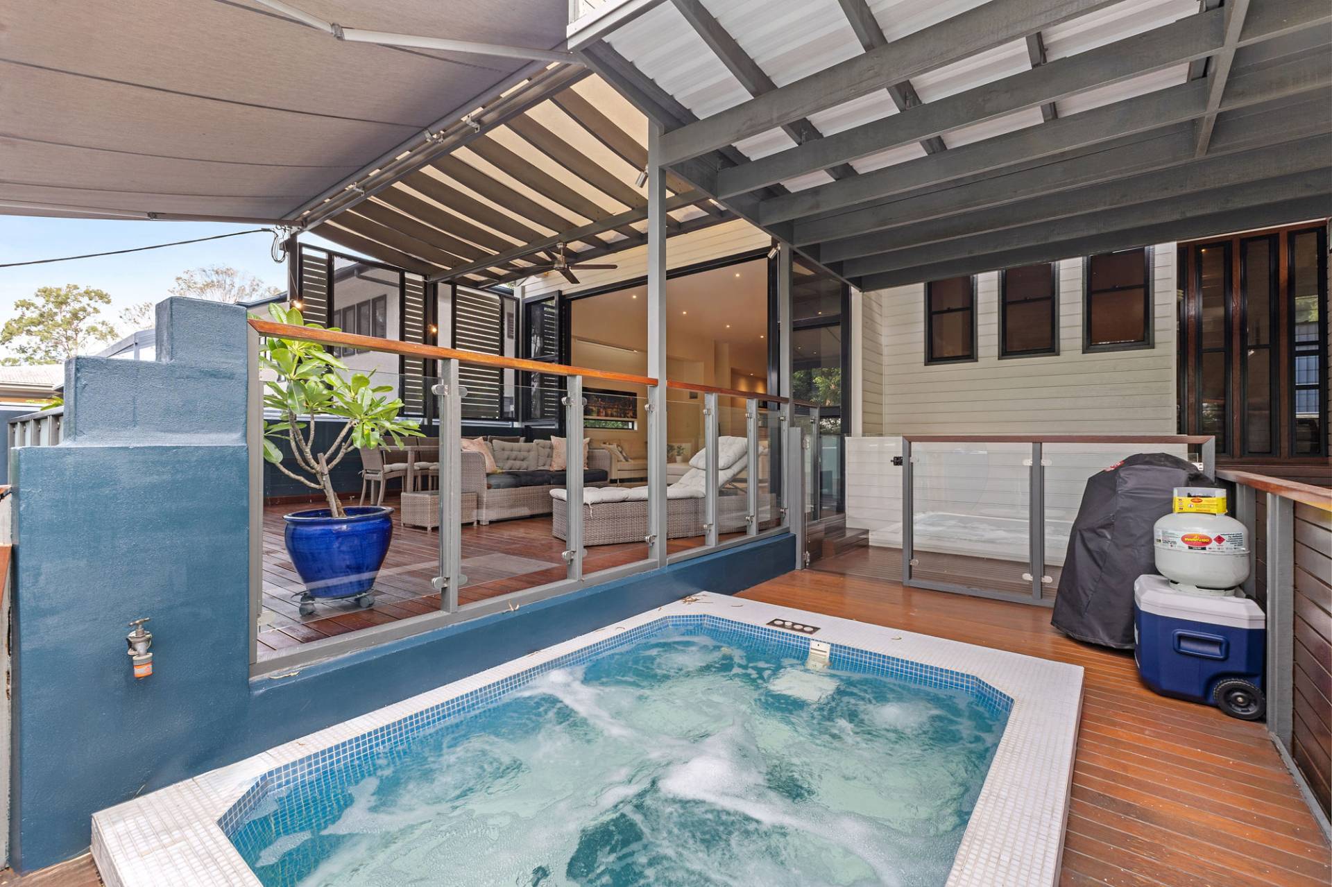 The interior features generous living areas filled with natural light. The kitchen connects directly to the living and dining spaces, creating a functional layout for daily living and entertaining. Large windows and doors open to the outdoor area, providing a private setting for weekend relaxation in the Spa or outdoor dining with friends and family. This home combines space, privacy, and convenience in a sought-after location, with quality finishes and a low-maintenance design.