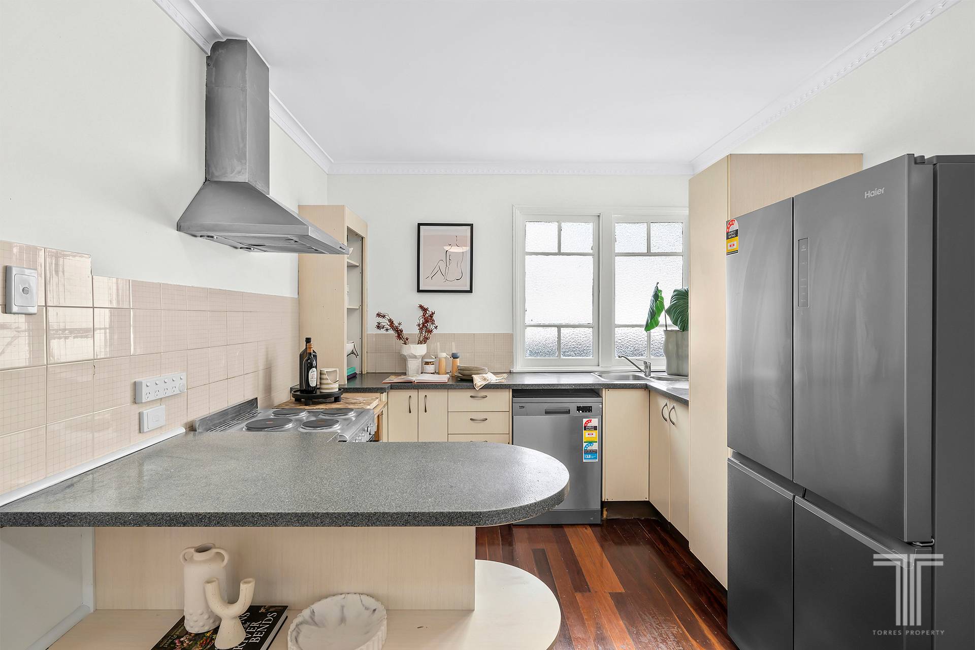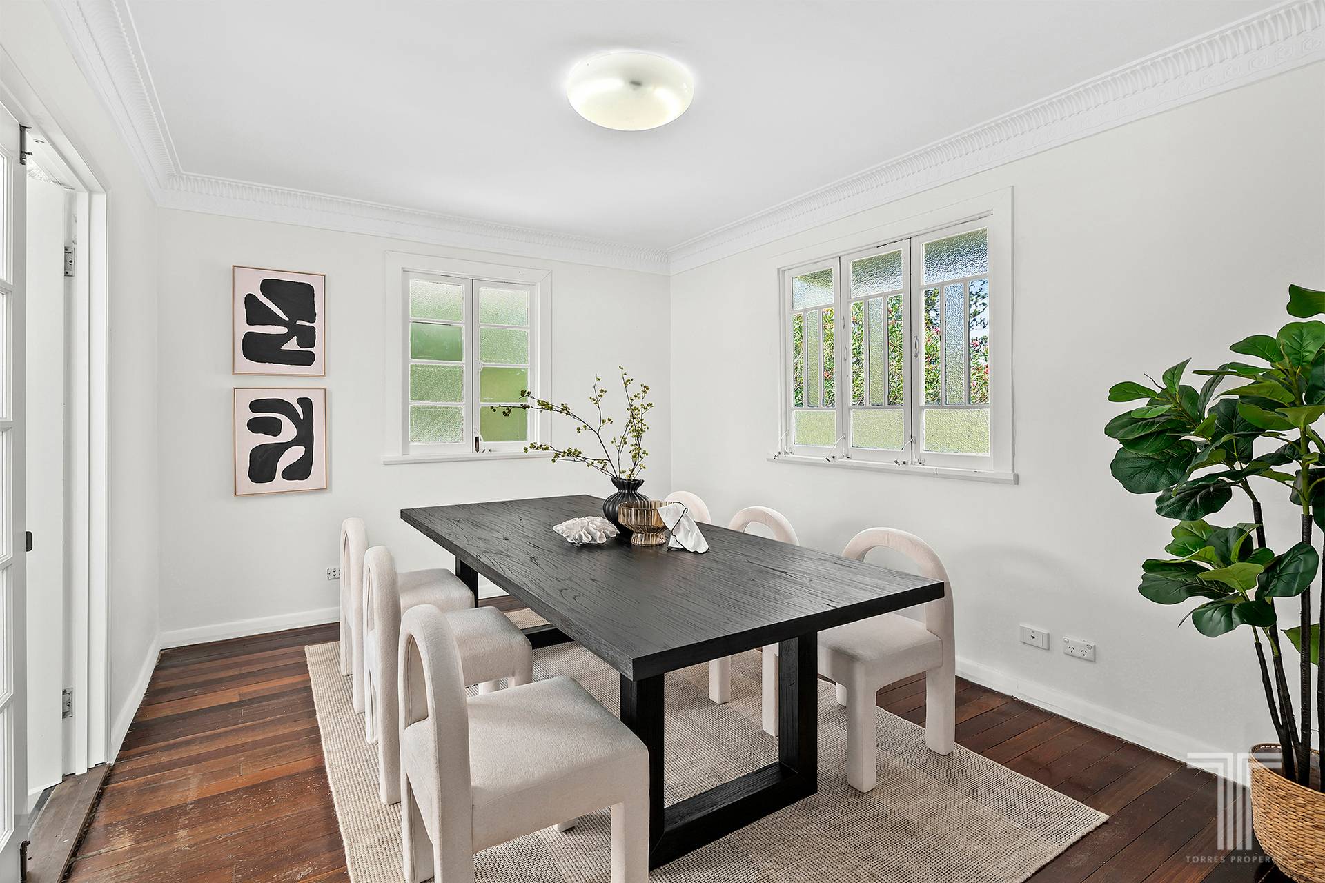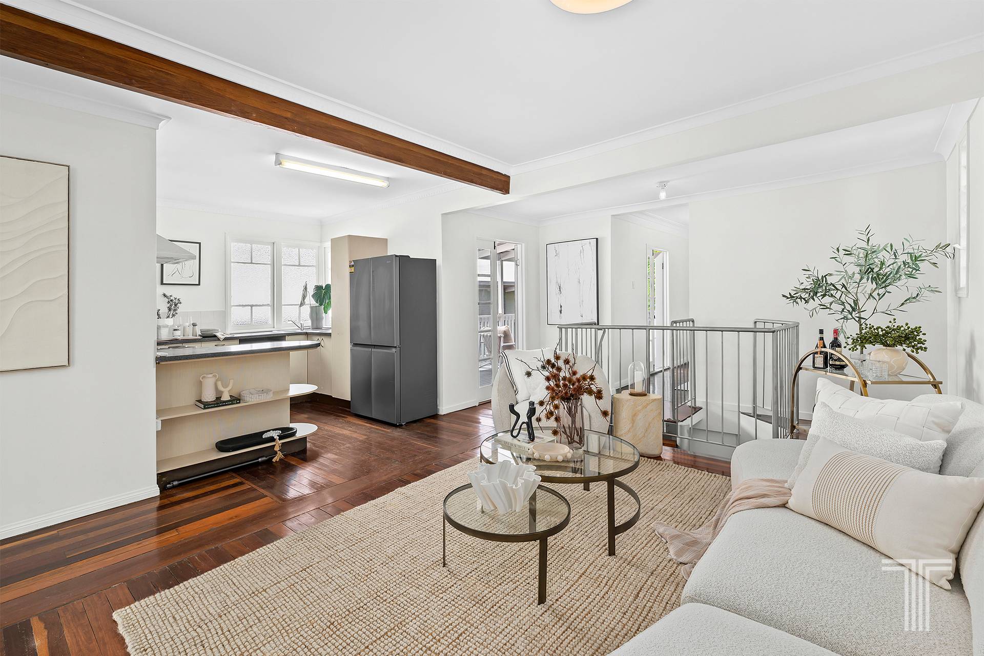 Polished floorboards guide you through the upper level, where everyday living unfolds with warmth and ease. The dining space honours the home's character era with decorative cornices, adding a graceful nod to its origins. The kitchen and living zone connect effortlessly to an expansive rear deck, elevated to capture leafy outlooks and cooling breezes. It is an inviting space for long lunches, relaxed dinners and quiet mornings with coffee in hand.
