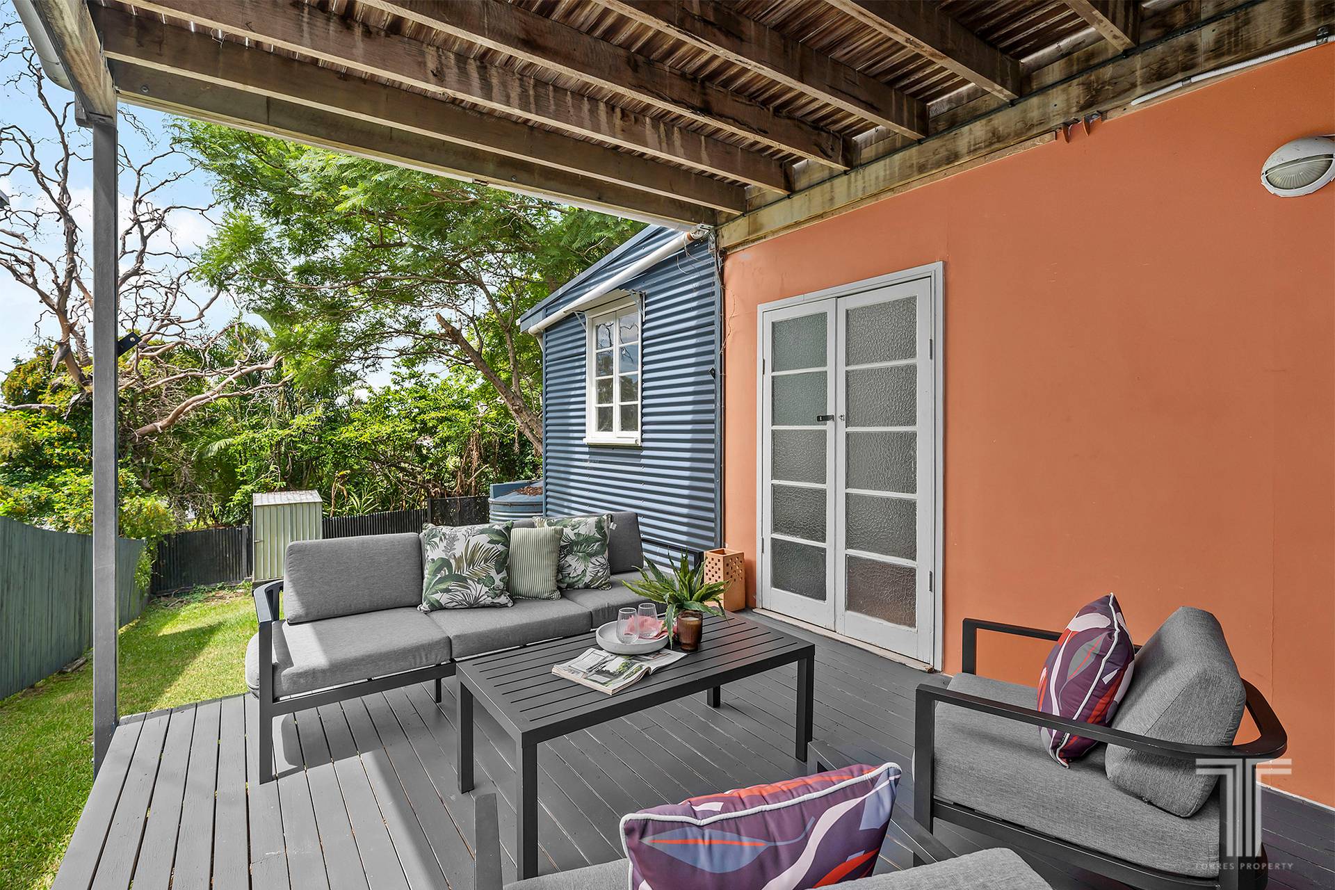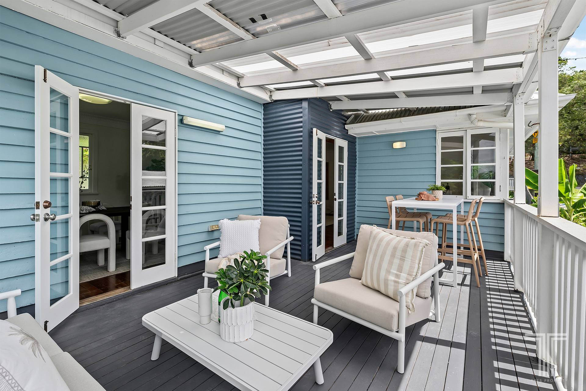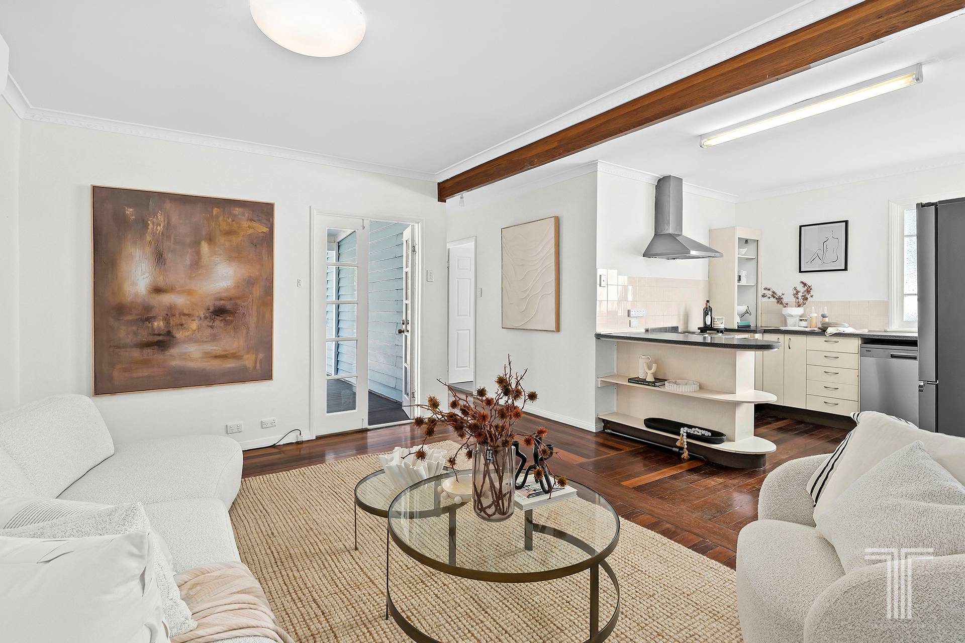 Polished floorboards guide you through the upper level, where everyday living unfolds with warmth and ease. The dining space honours the home's character era with decorative cornices, adding a graceful nod to its origins. The kitchen and living zone connect effortlessly to an expansive rear deck, elevated to capture leafy outlooks and cooling breezes. It is an inviting space for long lunches, relaxed dinners and quiet mornings with coffee in hand.
