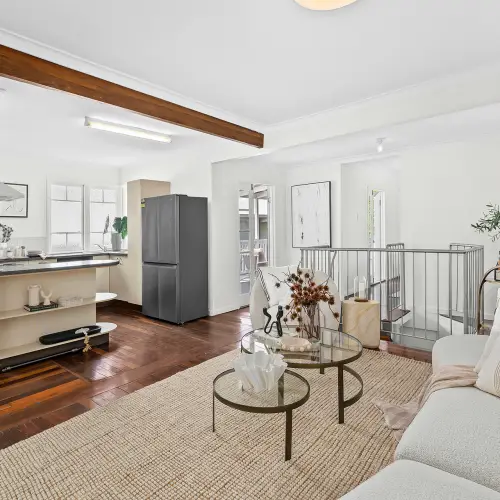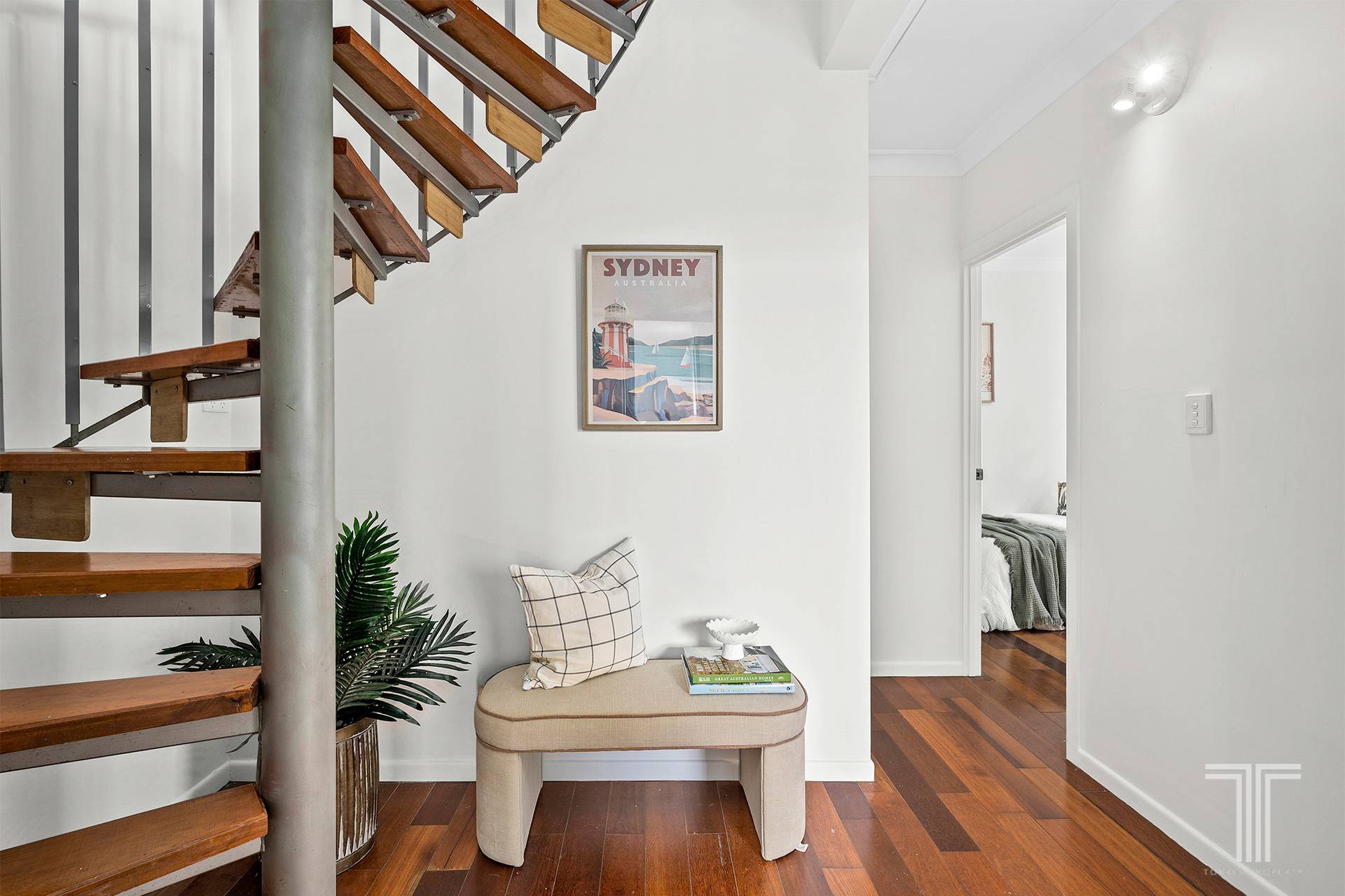 An internal spiral staircase curves gently to the lower level, a subtle architectural feature that connects the home's living areas with its private retreat below. What appears modest from the façade expands into a generous dual-level design, where two thoughtfully designed bedrooms with ensuites are complemented by a third bedroom that can be adapted to suit your lifestyle.