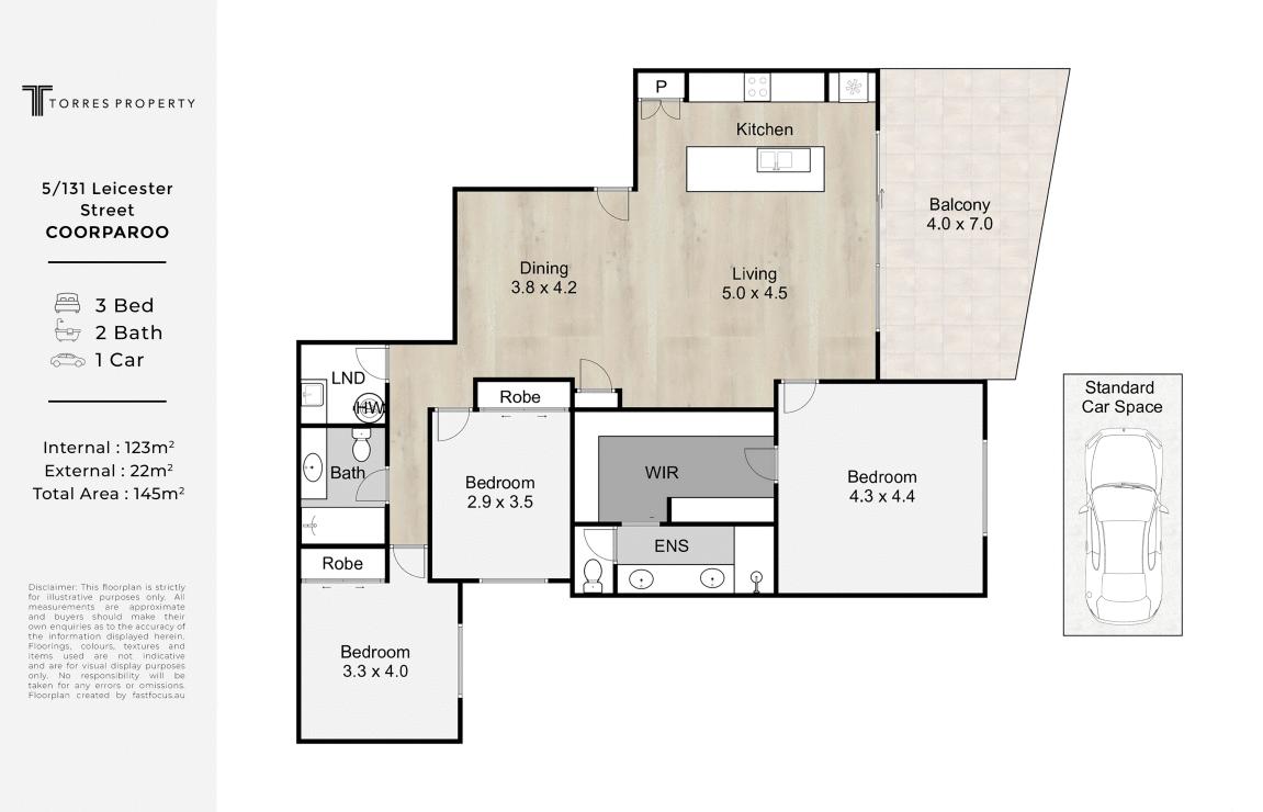 Disclaimer: Whilst every care is taken in the preparation of the information contained in this marketing, Torres Property will not be held liable for any errors in typing or information. All interested parties should rely upon their own enquiries in order to determine whether or not this information is in fact accurate.