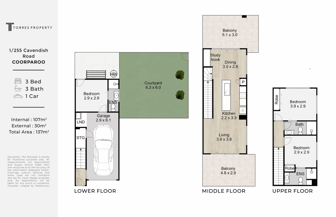 Disclaimer: Whilst every care is taken in the preparation of the information contained in this marketing, Torres Property will not be held liable for any errors in typing or information. All interested parties should rely upon their own enquiries in order to determine whether or not this information is in fact accurate.