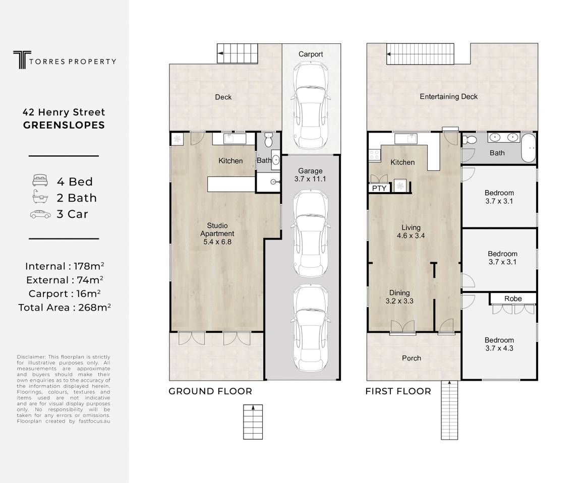 Disclaimer: Whilst every care is taken in the preparation of the information contained in this marketing, Torres Property will not be held liable for any errors in typing or information. All interested parties should rely upon their own enquiries in order to determine whether or not this information is in fact accurate.