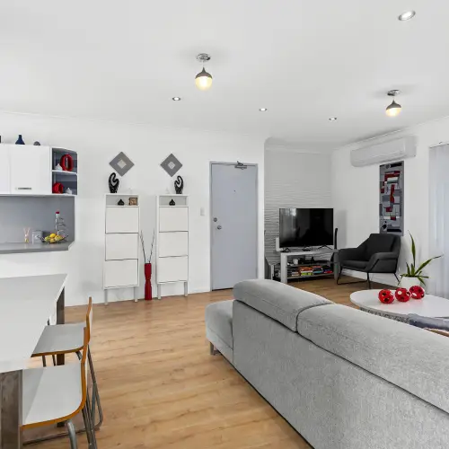 Approaching the property, the smaller complex immediately introduces a more relaxed and intimate residential setting. With minimal neighbours and a low body corporate structure, the building offers an appealing sense of community while maintaining a peaceful atmosphere. The apartment itself sits toward the back of the complex, allowing it to enjoy a more private position away from the street with elevated glimpses of the city skyline adding to the appeal.