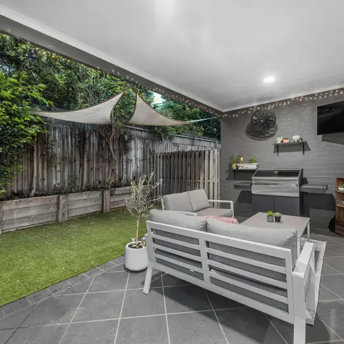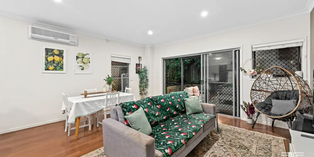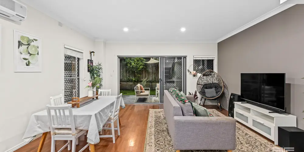 The living area connects seamlessly to a quiet and private rear courtyard, creating a relaxed outdoor extension of the home. Framed by greenery and designed for low maintenance living, this outdoor space provides the perfect setting for weekend barbecues, morning coffee or a peaceful place to unwind at the end of the day.