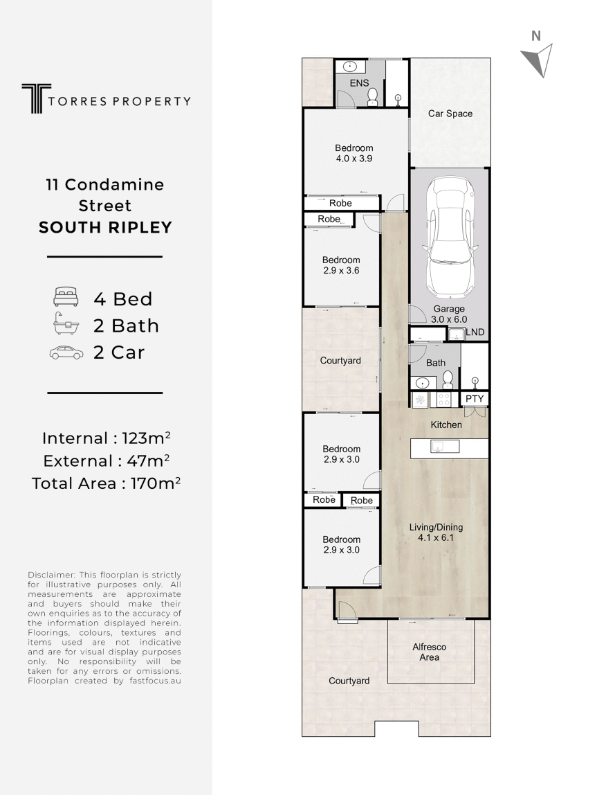 Disclaimer: Whilst every care is taken in the preparation of the information contained in this marketing, Torres Property will not be held liable for any errors in typing or information. All interested parties should rely upon their own enquiries in order to determine whether or not this information is in fact accurate.