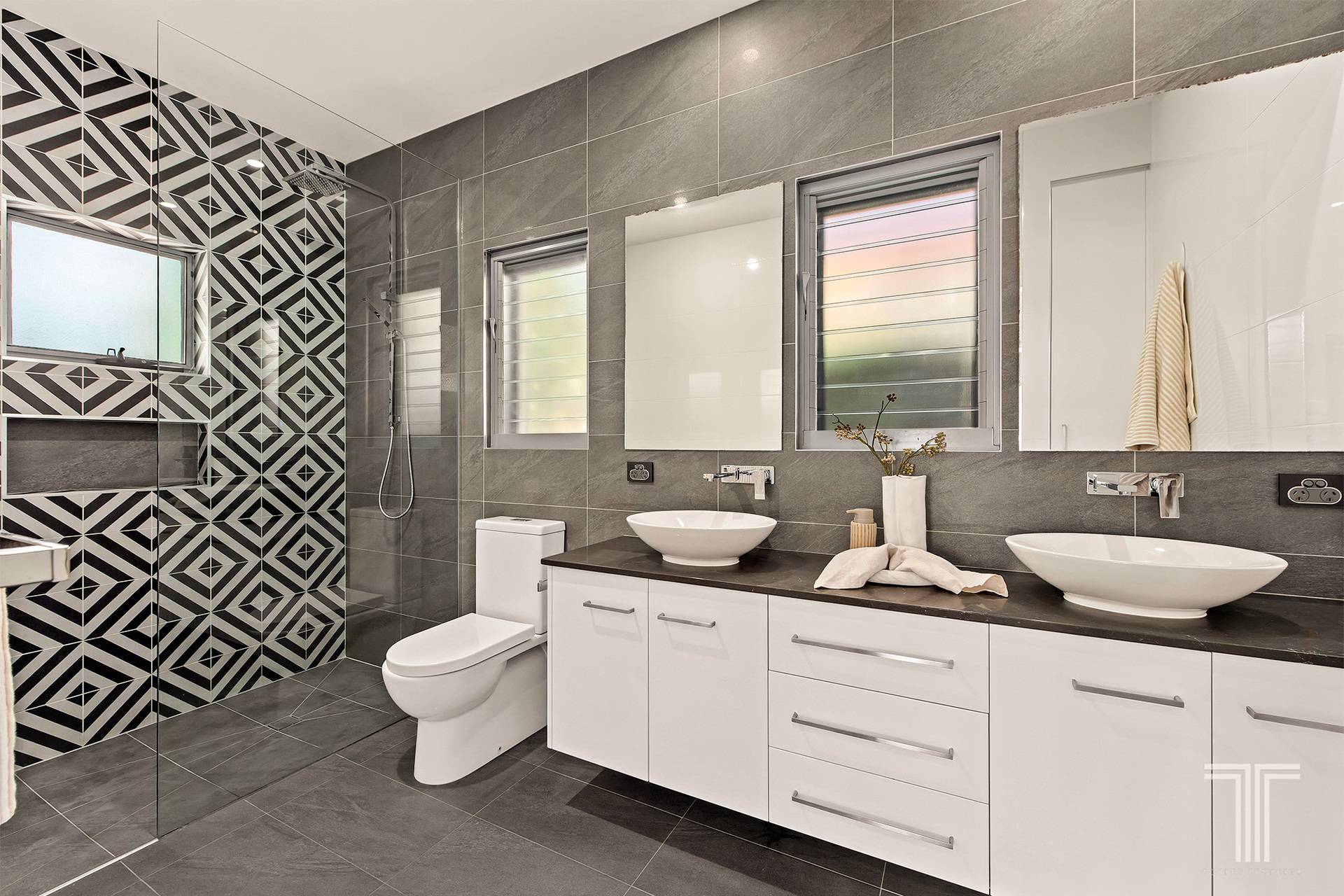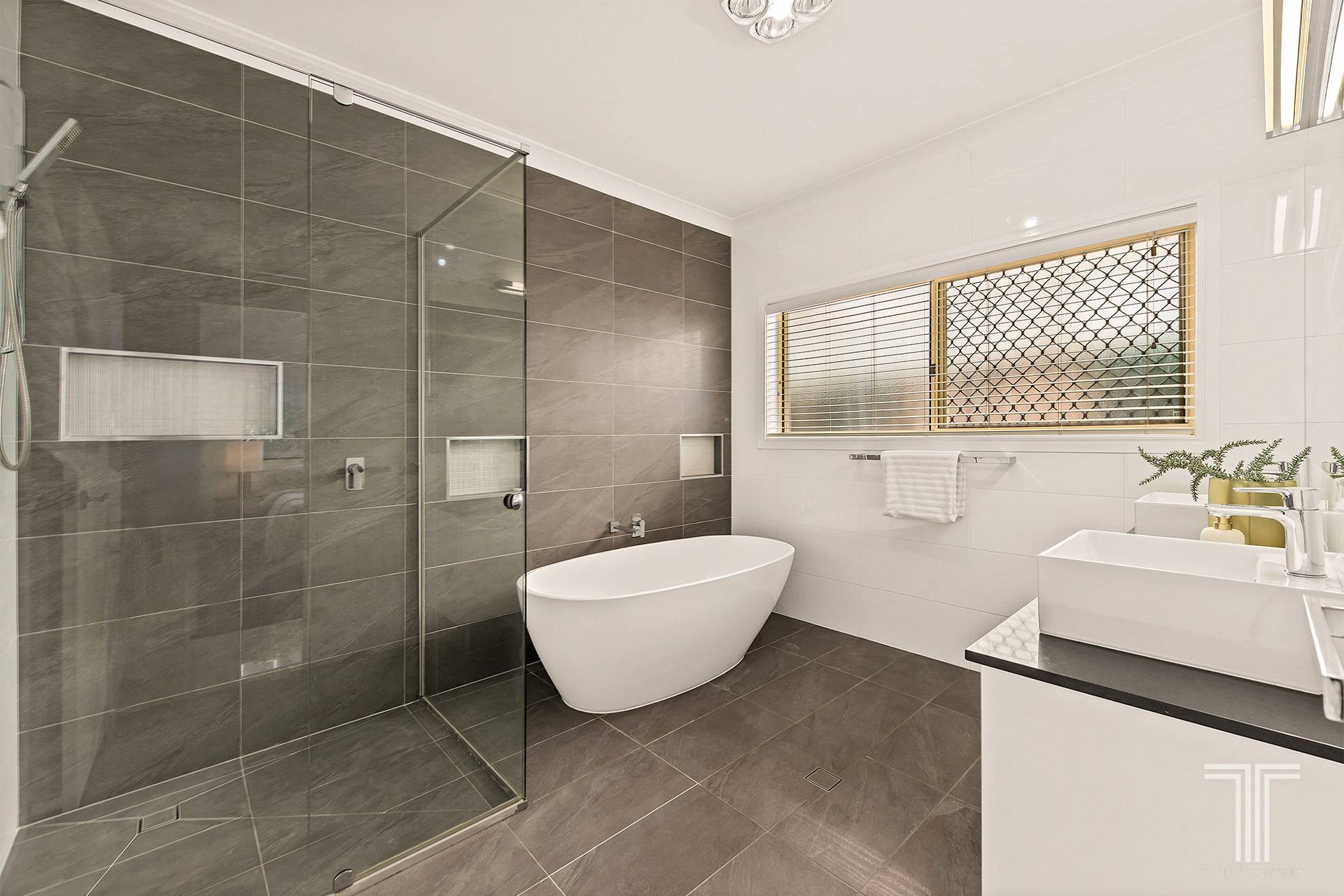 • Large-format tiling through main living areas for easy care